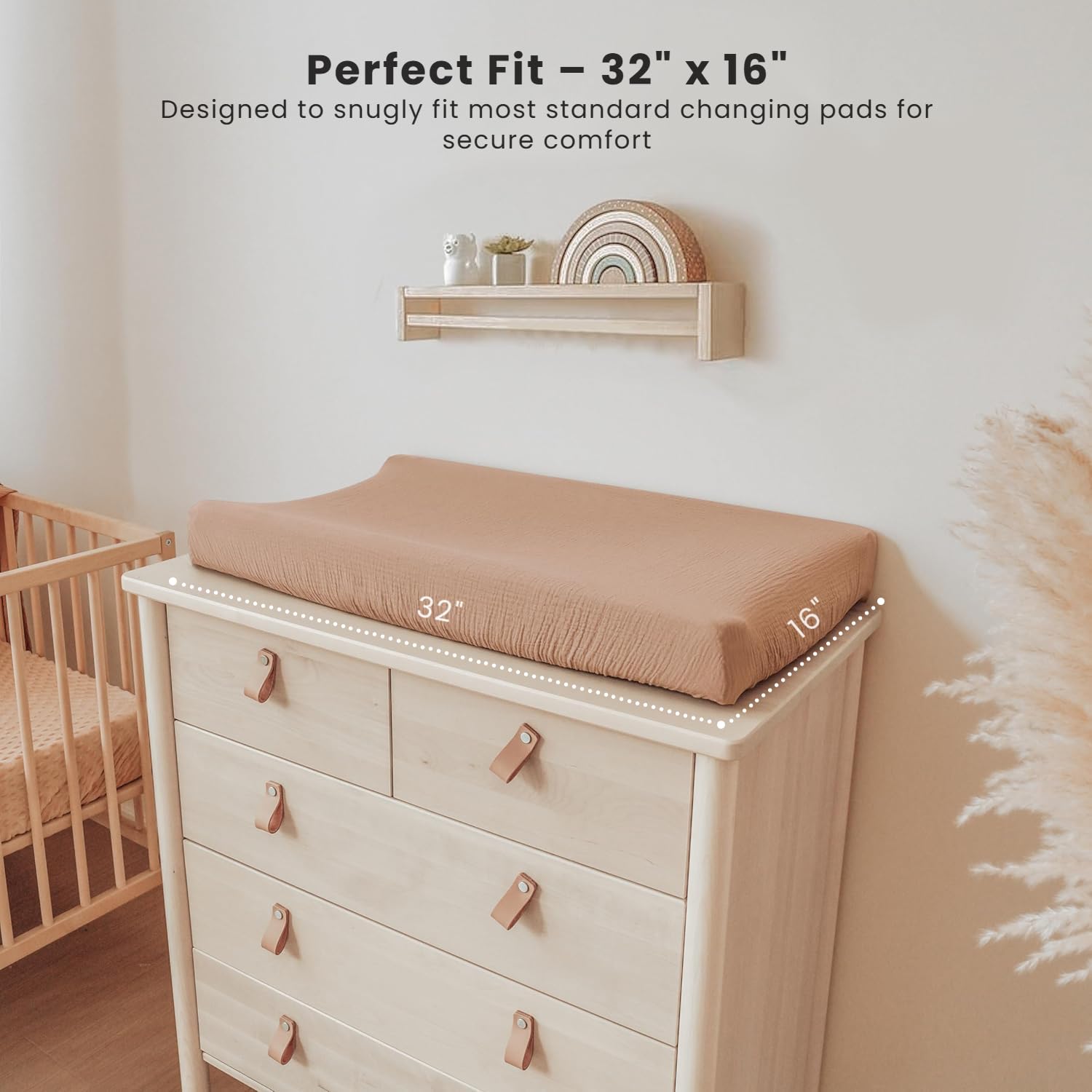 Easy to Use and Change: The muslin changing table pad covers are effortless to put on and take off. The elasticized edges allow for quick and convenient application, making it easy to switch between covers when needed. The muslin fabric is machine washable and easy to clean