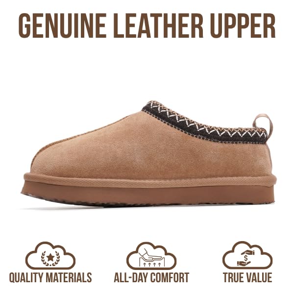๐๐ฒ๐ป๐๐ถ๐ป๐ฒ ๐๐ฒ๐ฎ๐๐ต๐ฒ๐ฟ ๐จ๐ฝ๐ฝ๐ฒ๐ฟ: Real Leather resists scuffs, holds its shape, and ages beautifully for a polished look on womens slippers. The sturdy upper supports a secure slip-on fit while staying breathable over the plush shearling liningโperfect house shoes for women & women's slippers that feel luxe yet everyday-ready.