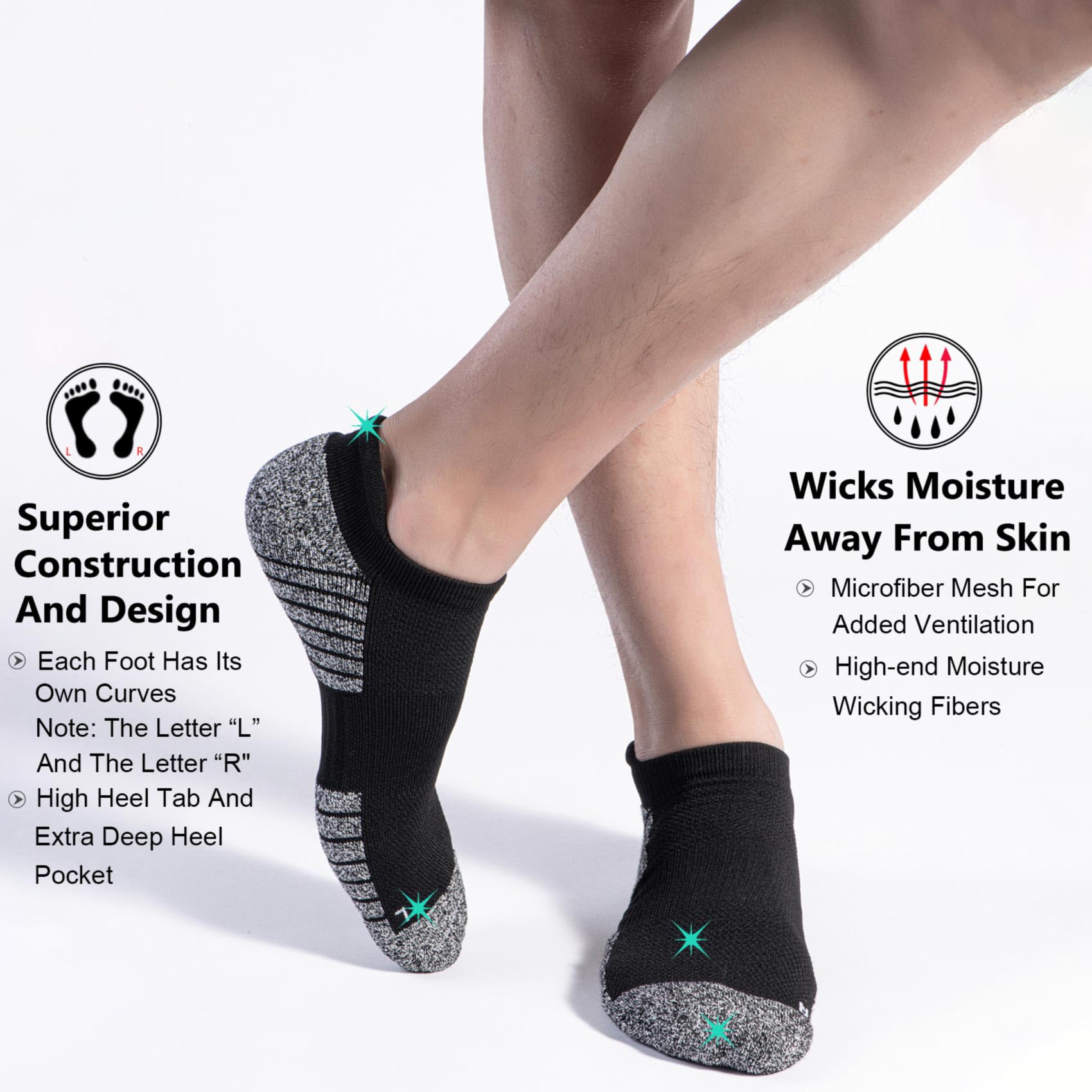 Moisture Wicking and Anti-odor: Made from high-end moisture wicking fibers, plus specially constructed, reinforced microfiber mesh for added ventilation, workout socks move perspiration away effectively from skin surface to keep feet fresh and dry; Excellent anti-Odor and anti-blister short socks help keep your feet in better condition