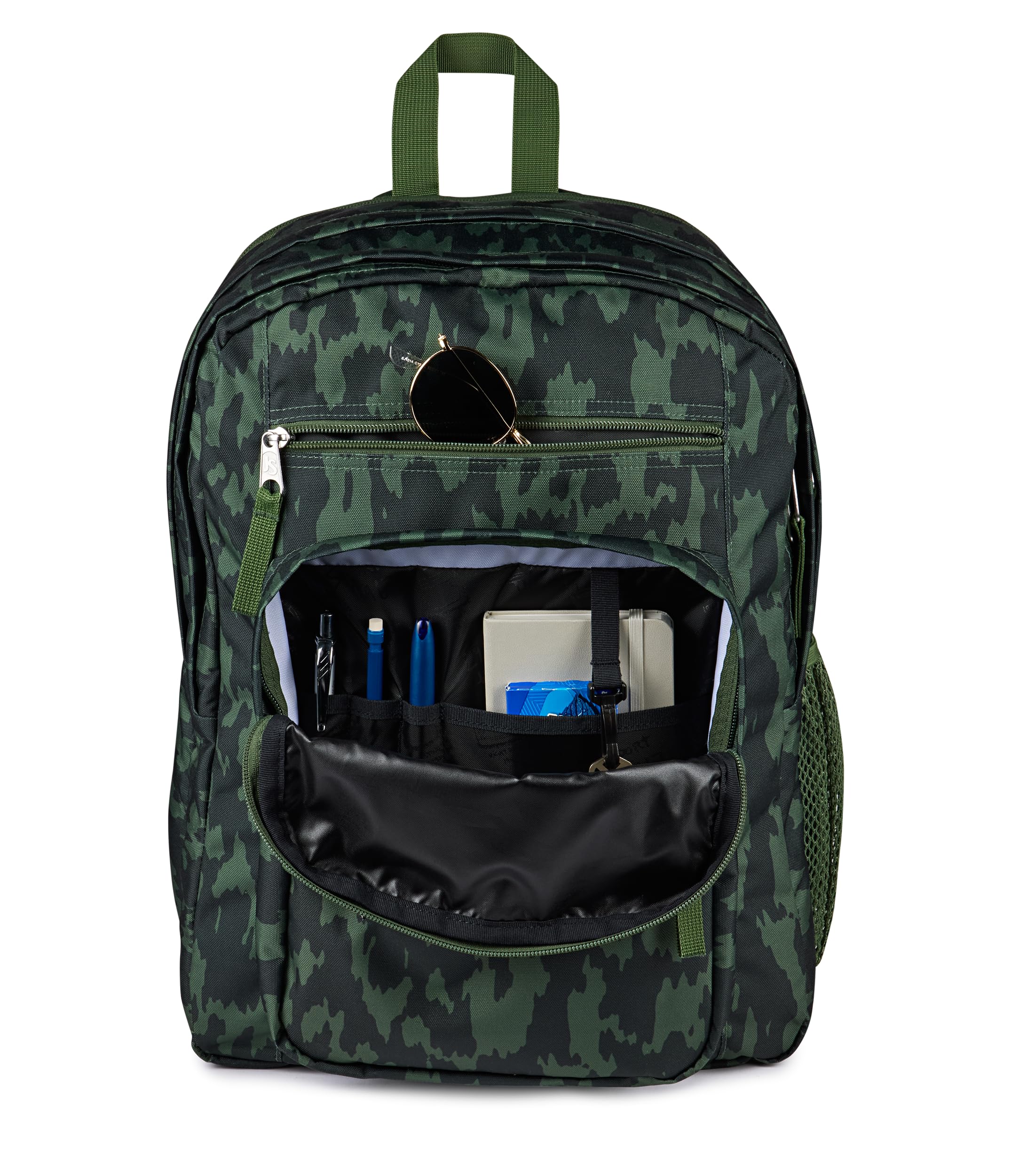 Description These extra-large capacity backpacks feature 2 large main compartments and a dedicated, padded 15-inch laptop sleeve. This pack is designed for comfort, with ergonomic S-curve shoulder straps and a fully padded back panel. Also features a front utility pocket with an organizer, a side water bottle compartment, and a zippered front stash pocket, ensuring you always stay organized with these spacious and convenient backpacks. At JanSport, we have been engineering high-quality, durable and reliable products since 1967, and we stand behind our large laptop backpack. This backpack for a laptop has been carefully designed to provide unmatched functionality, convenience and utility. Product Details: Backpack Materials: 100% Recycled 600d Polyester Main Body Fabric, Size: 17 x 13 x 7.5 inches, Capacity: 34 L