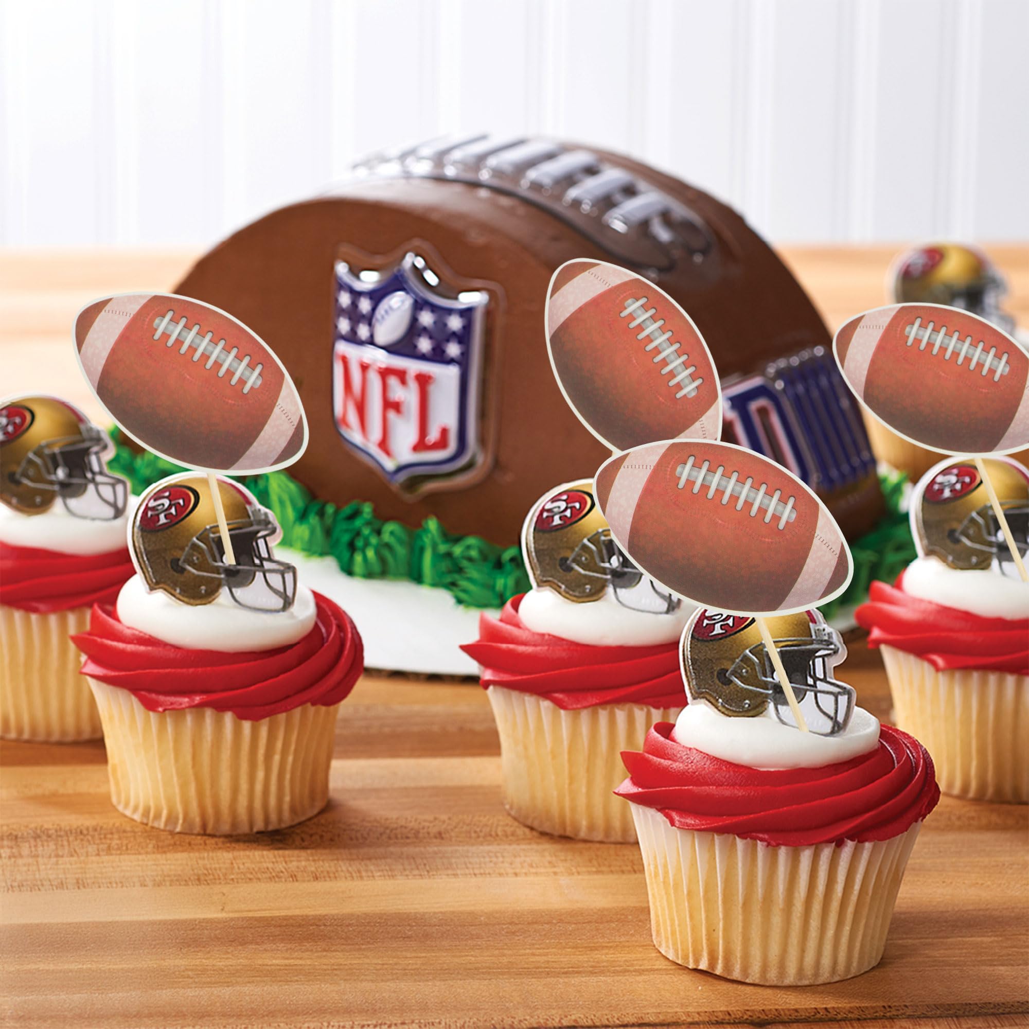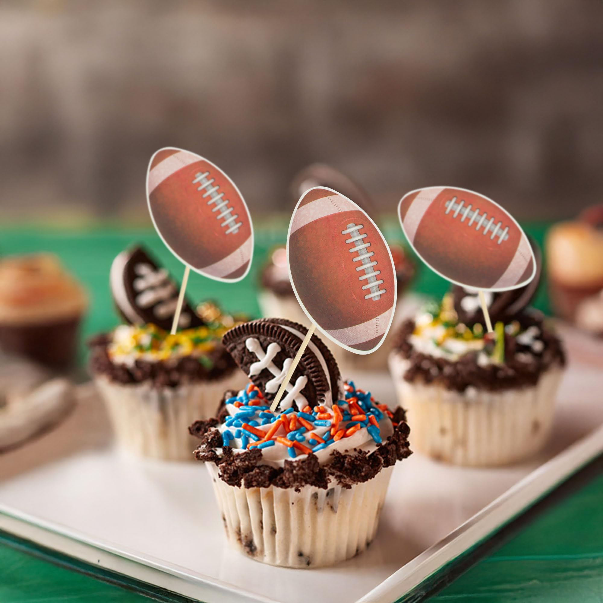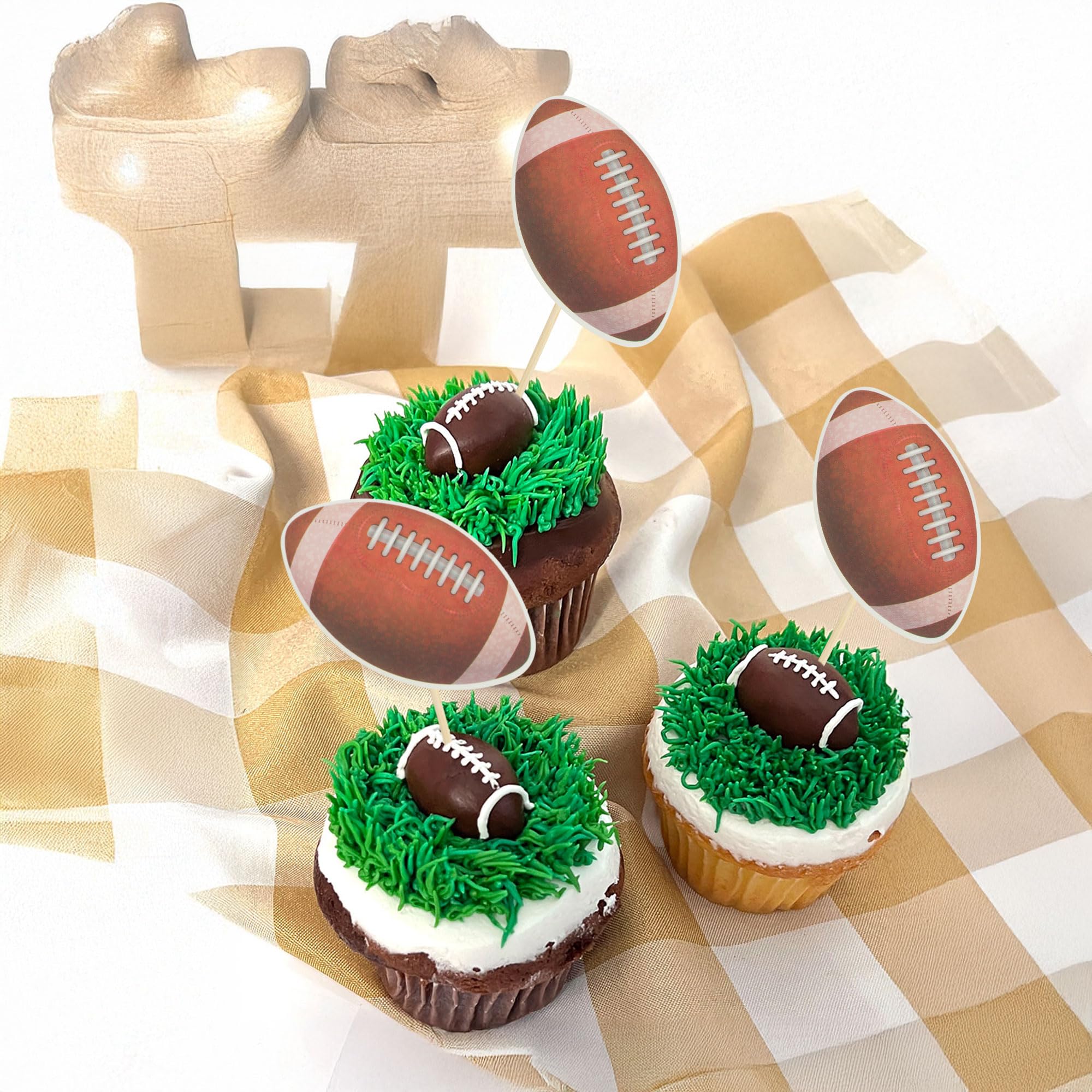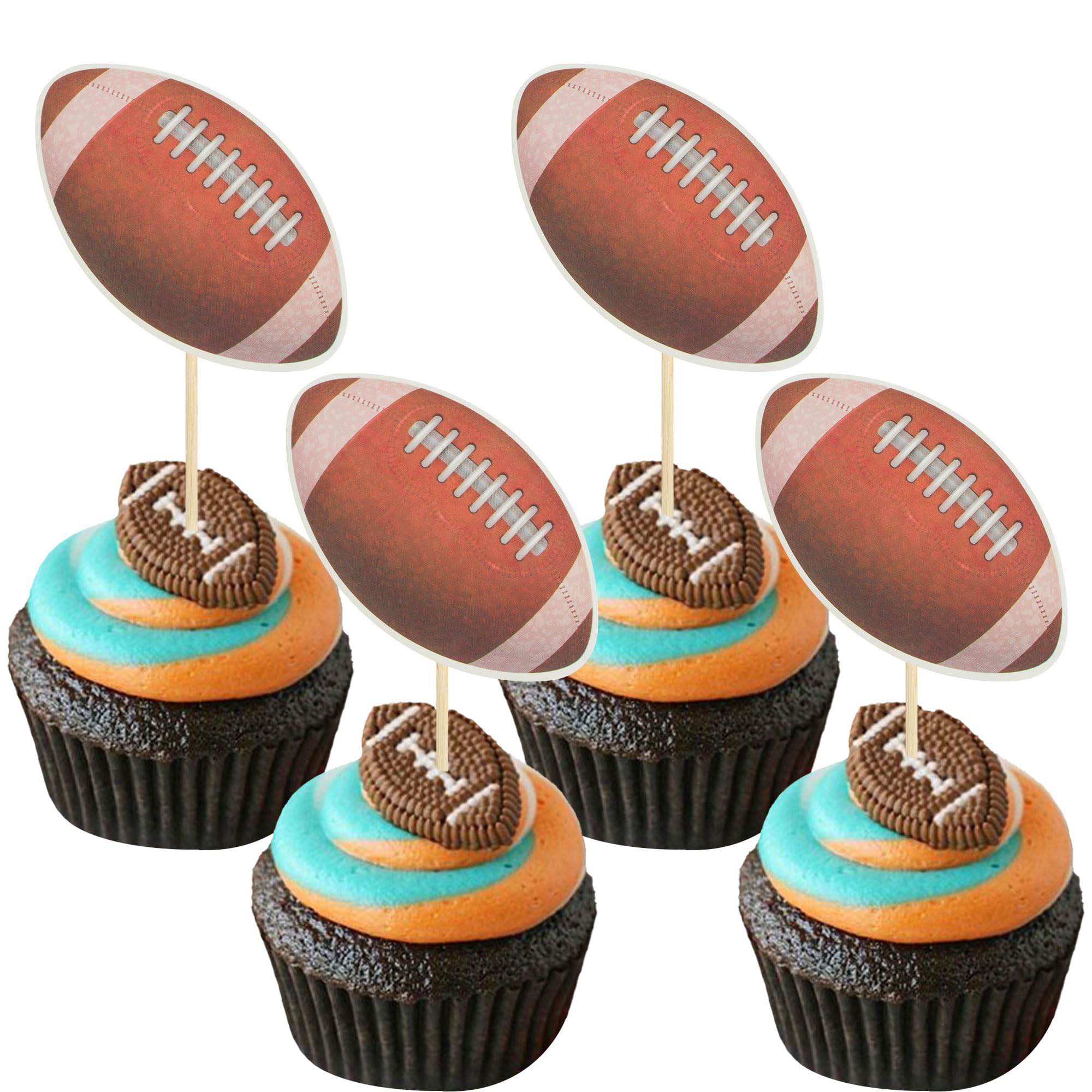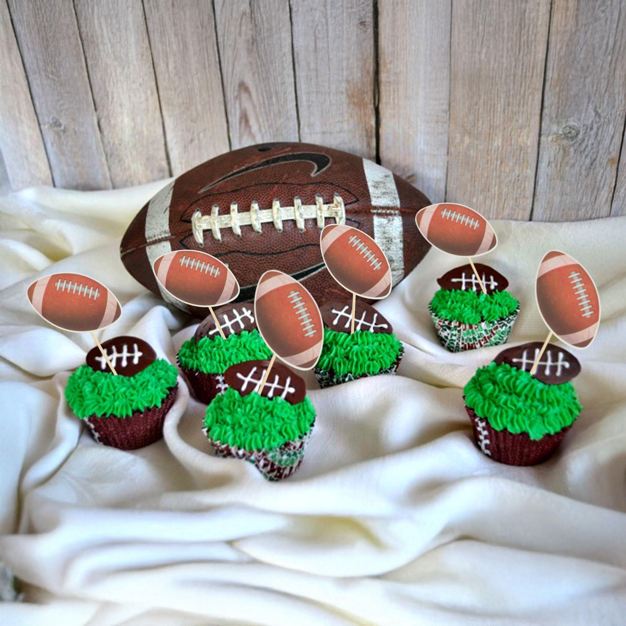 🏉Package included: 36Pcs American Football Cupcake Toppers. Comes with assembled, so you can insert into your cake directly, which make your cake more interesting.