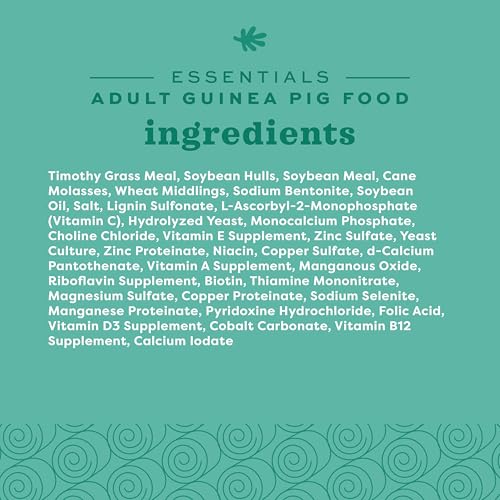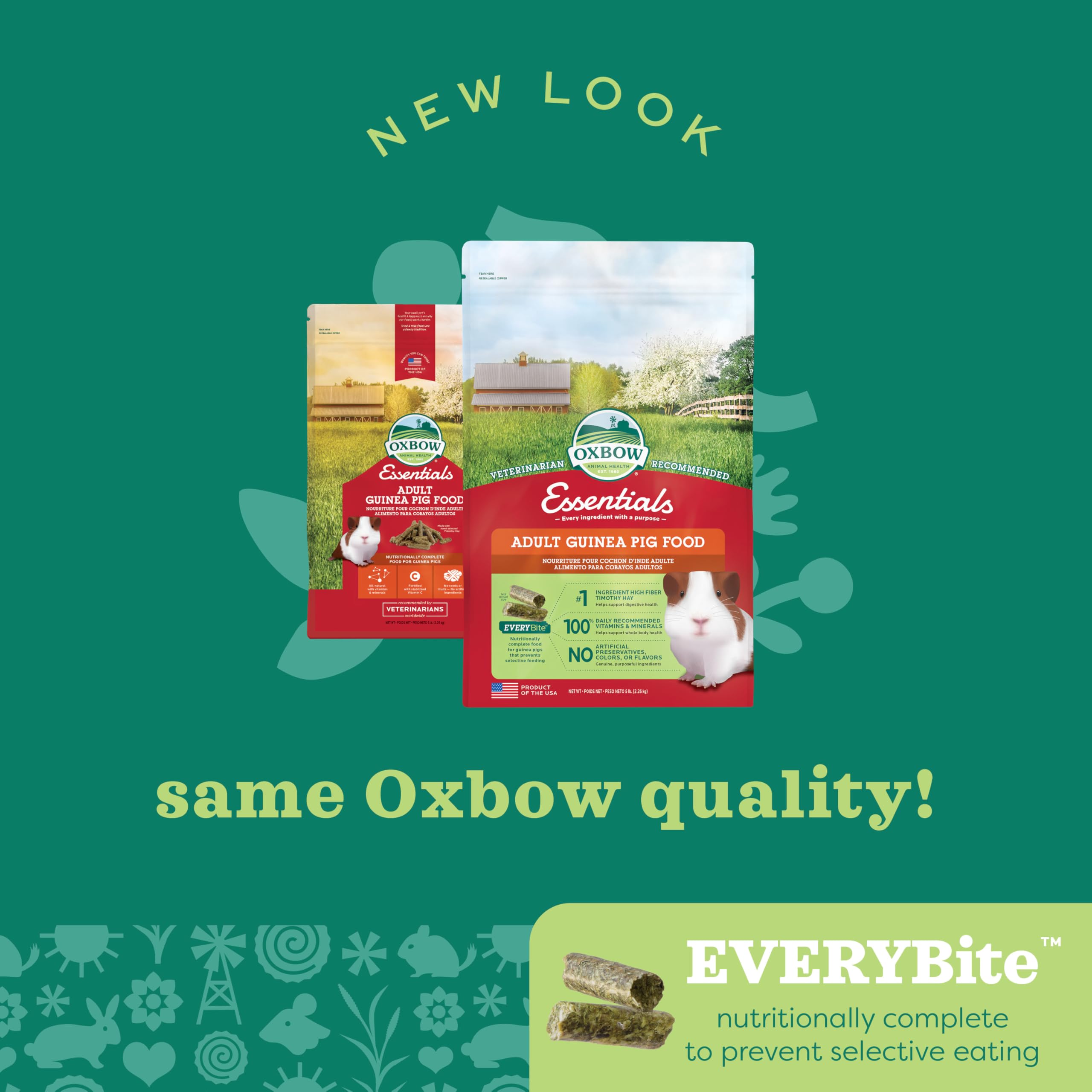 Oxbow Essentials Adult Guinea Pig Food is a premium, veterinarian-recommended diet formulated to meet the specific nutritional needs of adult guinea pigs, featuring high-fiber timothy grass meal as the primary ingredient to support optimal digestive health and prevent obesity. This uniform pellet formula eliminates selective feeding behaviors, ensuring consistent intake of essential nutrients in every bite. Fortified with stabilized vitamin C, prebiotics, and chelated minerals, it promotes immune function, healthy skin, and a vibrant coat. The balanced calcium-to-phosphorus ratio supports bone and urinary health, while the absence of artificial preservatives, colors, or flavors makes it a wholesome choice for daily feeding. Designed for guinea pigs over six months of age, this diet should be fed alongside unlimited access to high-quality grass hay to provide complete and balanced nutrition. Trusted by pet parents and veterinarians alike, Oxbow Essentials Adult Guinea Pig Food supports a healthy, active lifestyle for your adult guinea pig.