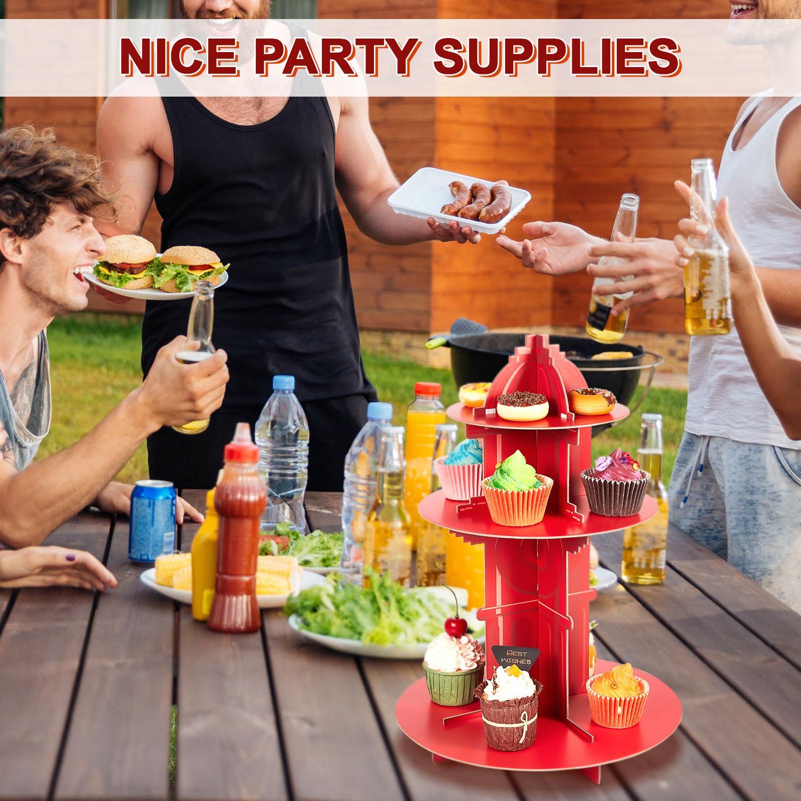 Interesting Fire Fighting Design: the 3 tier cupcake stand is designed to look like a fire hydrant with a red appearance, vivid and lifelike, which is very suitable for fire fighting themed parties and can render the fire fighting theme atmosphere, bringing you beautiful visual enjoyment