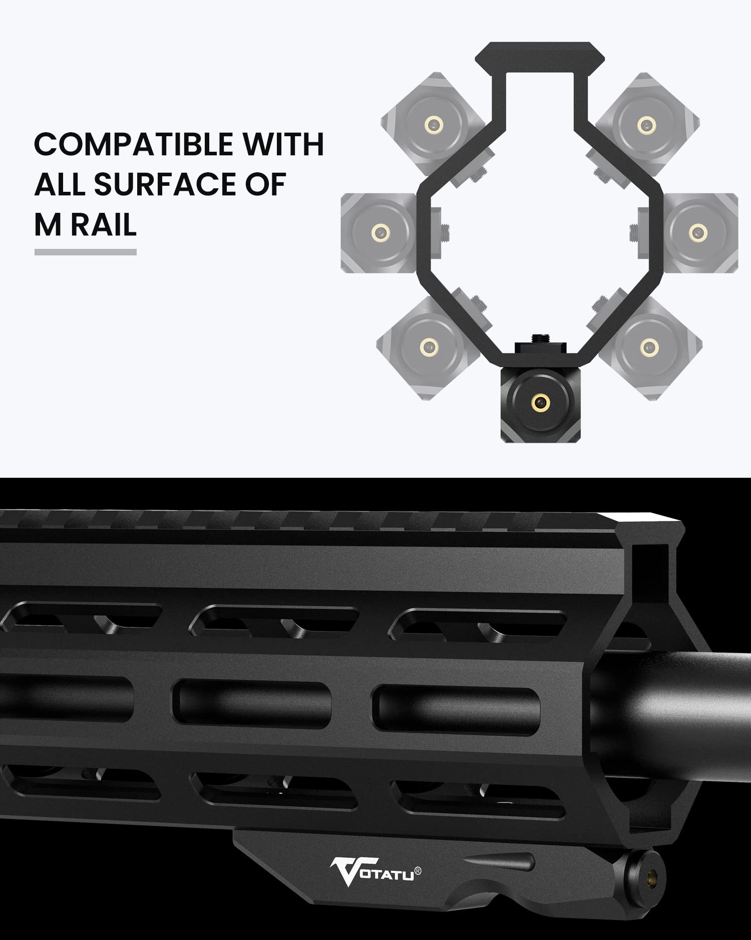 Ultra-lightweight and super low-profile design, compatible with M-Lok rail surface. Allows to attach to any surfaces of the rail without other rail adapter. Easy to operate for both left and right handed.