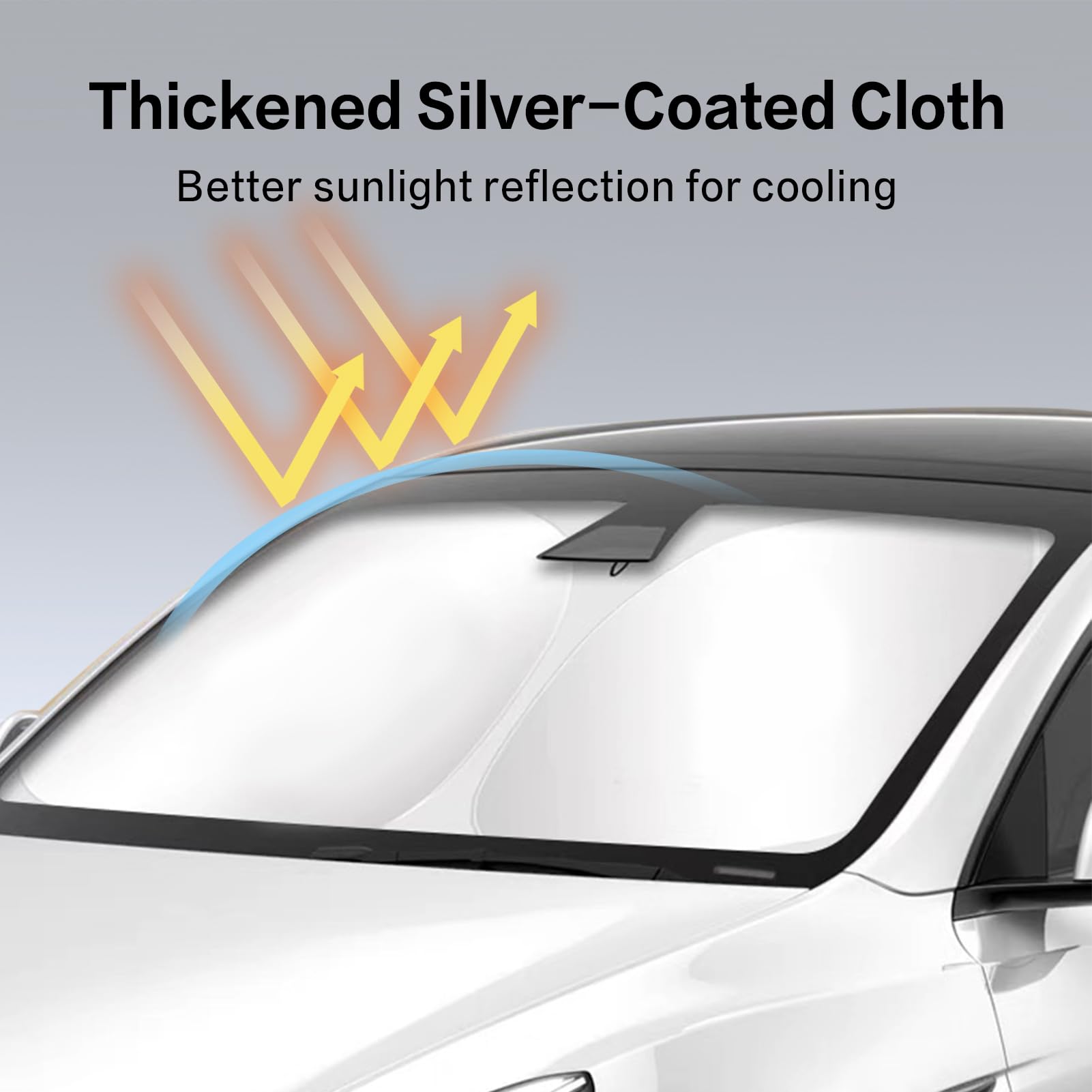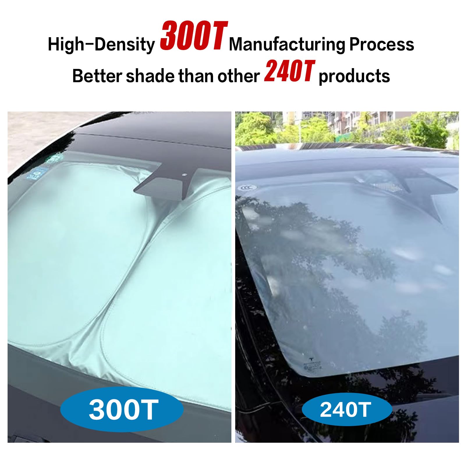 【High-Density 300T Manufacturing Process】Our Tesla sunshade boasts a superior density compared to the standard 240T model, significantly enhancing the shading efficiency.
