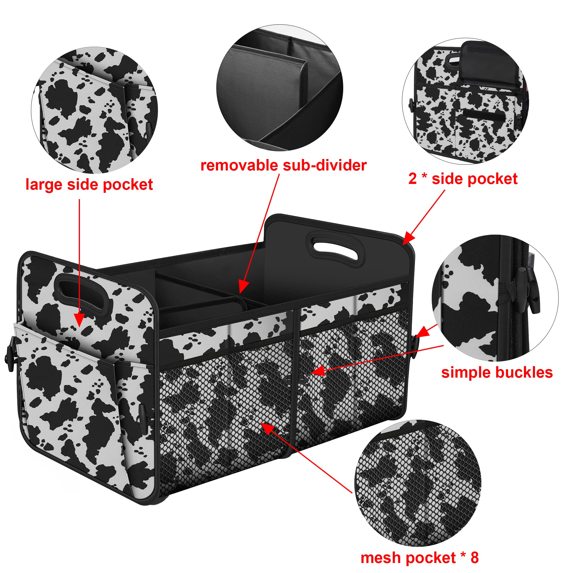 【Collapsible Trunk Storage】:The trunk organizer for suv collapsible multi compartments with removable divider can fold the size that you need in your car interior and fold away when not in use. Foldable and portable.