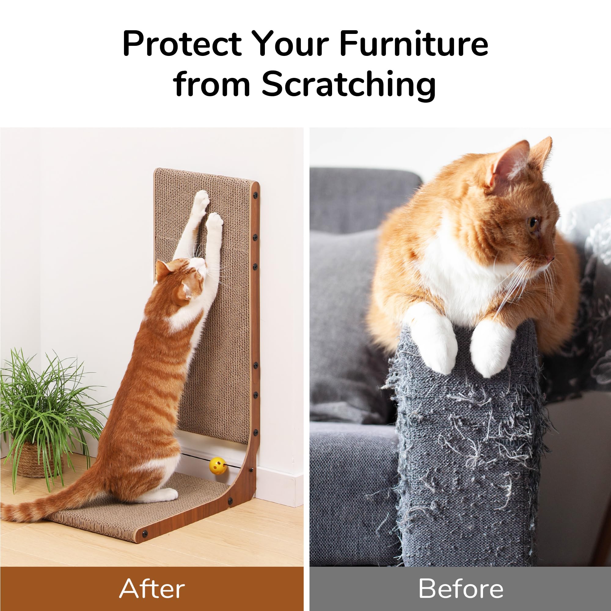 FURNITURE PROTECTION: This innovative L-shaped scratcher creates a special scratching zone against walls and sofas, effectively protecting your furniture from damage. Its space-saving vertical design extends upward, offering ample multi-angle scratching surfaces to satisfy natural instincts. Available in multiple sizes to perfectly fit every cat.