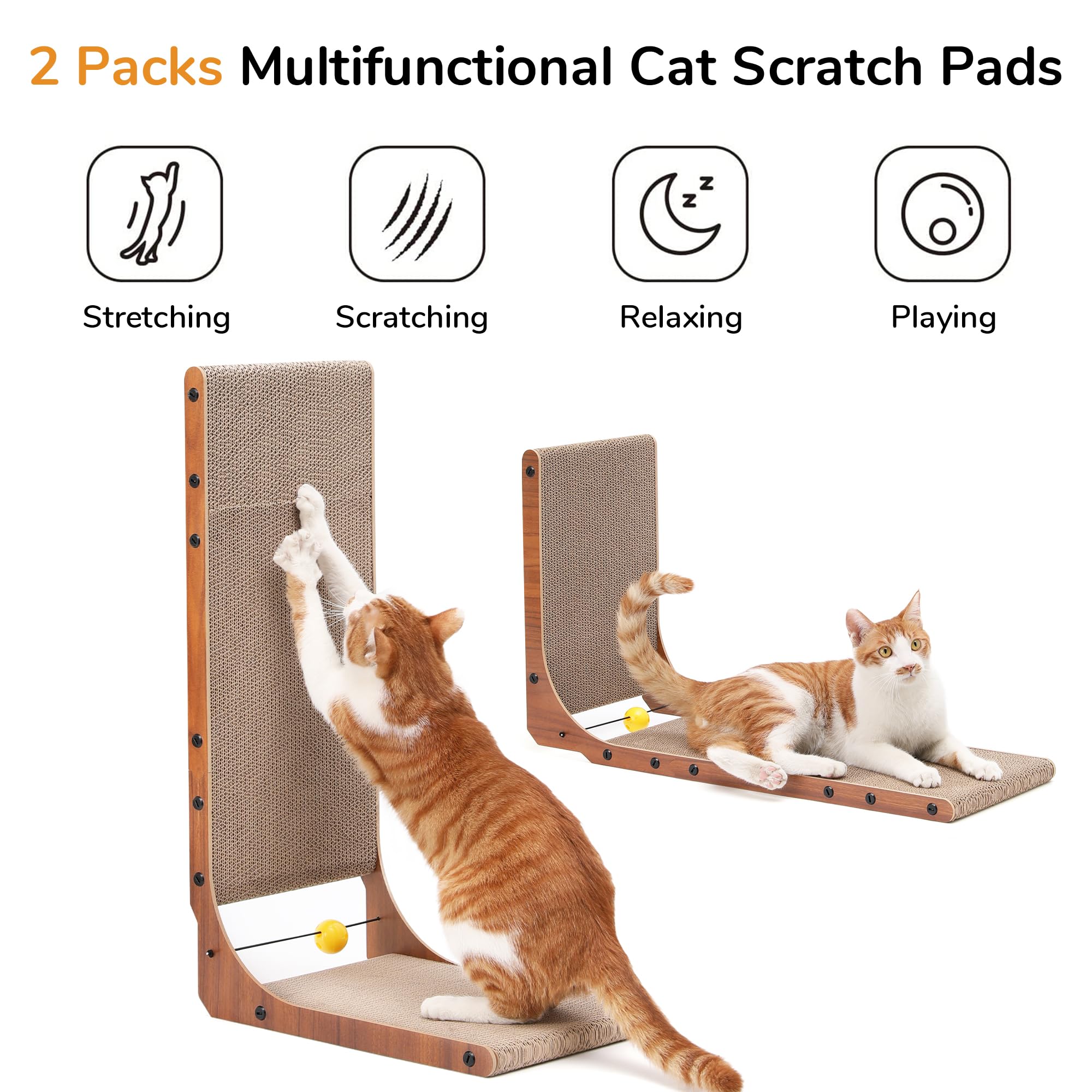 2-PACK MULTIFUNCTIONAL SCRATCHER: Get two durable L-shaped scratchers, Double the Value. Each unit measures 26.8" L x 16.6" W x 11.5" H, providing ample space for scratching, stretching, and lounging. Perfect for multi-cat households or placing in multiple rooms like the living room and bedroom.