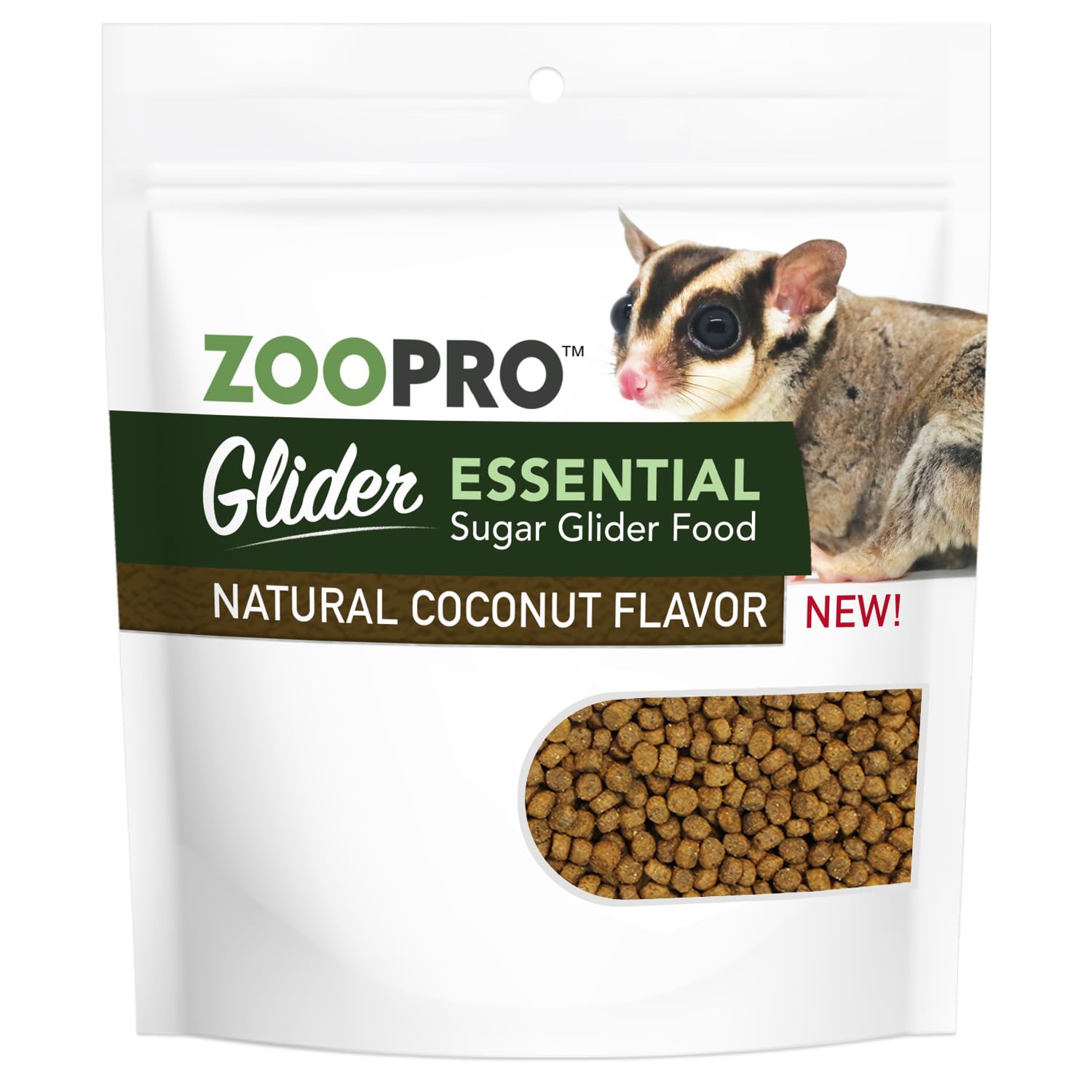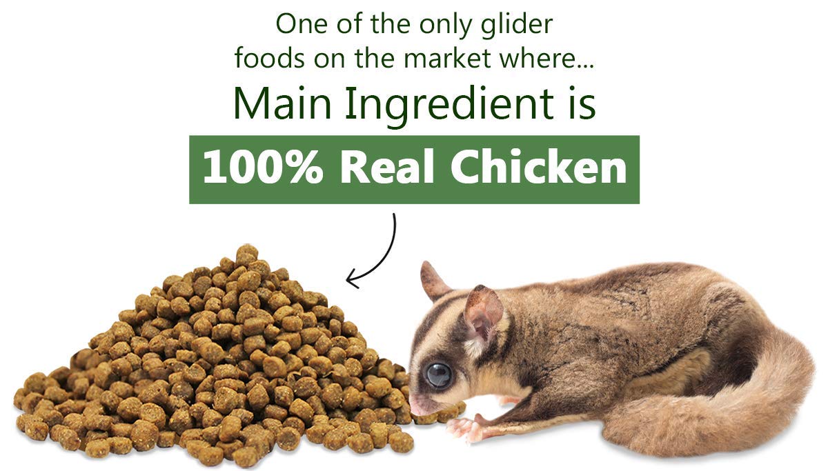 ZooPro's Glider Essential sugar glider food is a highly palatable cooked food with nutrient-rich whole eggs & chicken & the proper vitamin and mineral levels to form a nutritionally balanced food. SIZE: 1.75 lb. FEATURES: ✔ NUTRITIONALLY BALANCED - Precise formulation designed by a PhD in Animal Nutrition to meet the specific nutritional needs of sugar gliders and guarantee optimal health. ✔ DELICIOUS - Bite-sized kibble is sure to be a hit with even the pickiest suggie, with added natural coconut flavor ✔ MULTIPLE BENEFITS - Crunchy texture benefits both teeth and gums, prevents tooth abscess. Naturally occurring Omega 3 & 6 fatty acids to maintain skin and coat. Added vitamins and minerals. ✔ ZERO FILLERS - No corn, wheat or soy like other sugar glider diets on the market. No animal by-products. 100% natural and made in the USA. Suggested Feeding: Offer free choice along with ZooPro Re-Hydrate (fruits & vegetables). Limit fruits & vegetables to 25% of the diet. Adjust the amount fed to ensure your pet maintains optimum body weight. Always provide multiple sources of bottled water. Guaranteed Analysis: Crude Protein 31.00% (min), Crude Fat 14.00% (min), Crude Fiber 4.00% (max), Moisture 10.00% (max), Calcium (min) 1.55%, Phosphorus (min) 1.06%. Ingredients: Chicken Meal, Brown Rice, Ground Grain Sorghum, Whitefish Meal, Chicken Fat (Preserved), Dried Plain Beet Pulp, Egg Product, Pea Protein, Dried Tomato Pomace, Natural Flavor, Brewers Dried Yeast, Whole Ground Flaxseed, Herring Meal, Menhaden Fish Oil (Preserved), Sunflower Lecithin, Coconut Oil (Preserved), Potassium Chloride, DL-Methionine, Choline Chloride, L-Lysine Taurine, Mixed Tocopherols (Preservative), Vitamin E Supplement, Niacin Supplement, Dried Seaweed Meal [See back of bag for full list of ingredients]