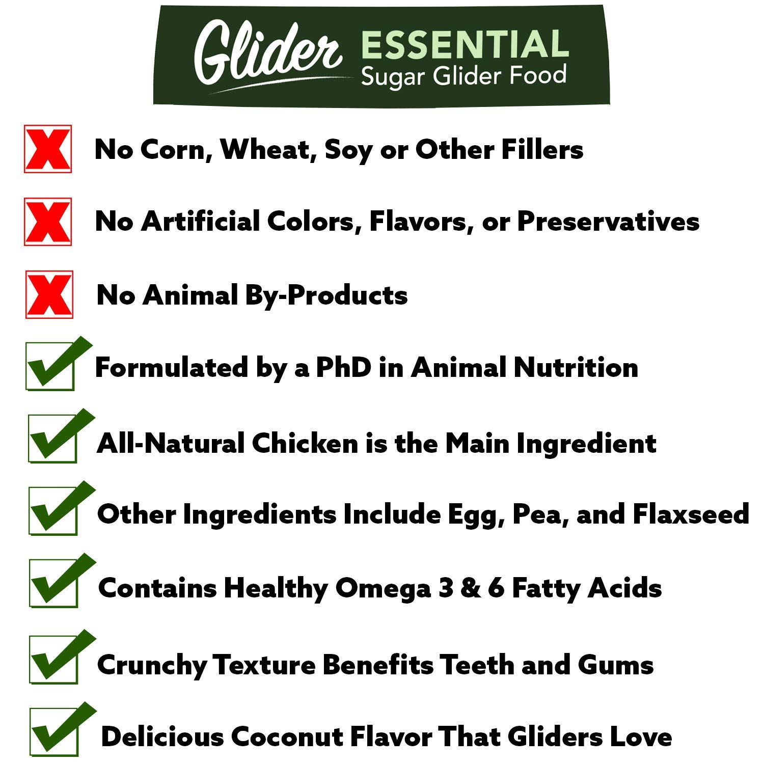 ✔ ZERO FILLERS - No corn, wheat or soy like other sugar glider diets on the market. No animal by-products. 100% natural and made in the USA.