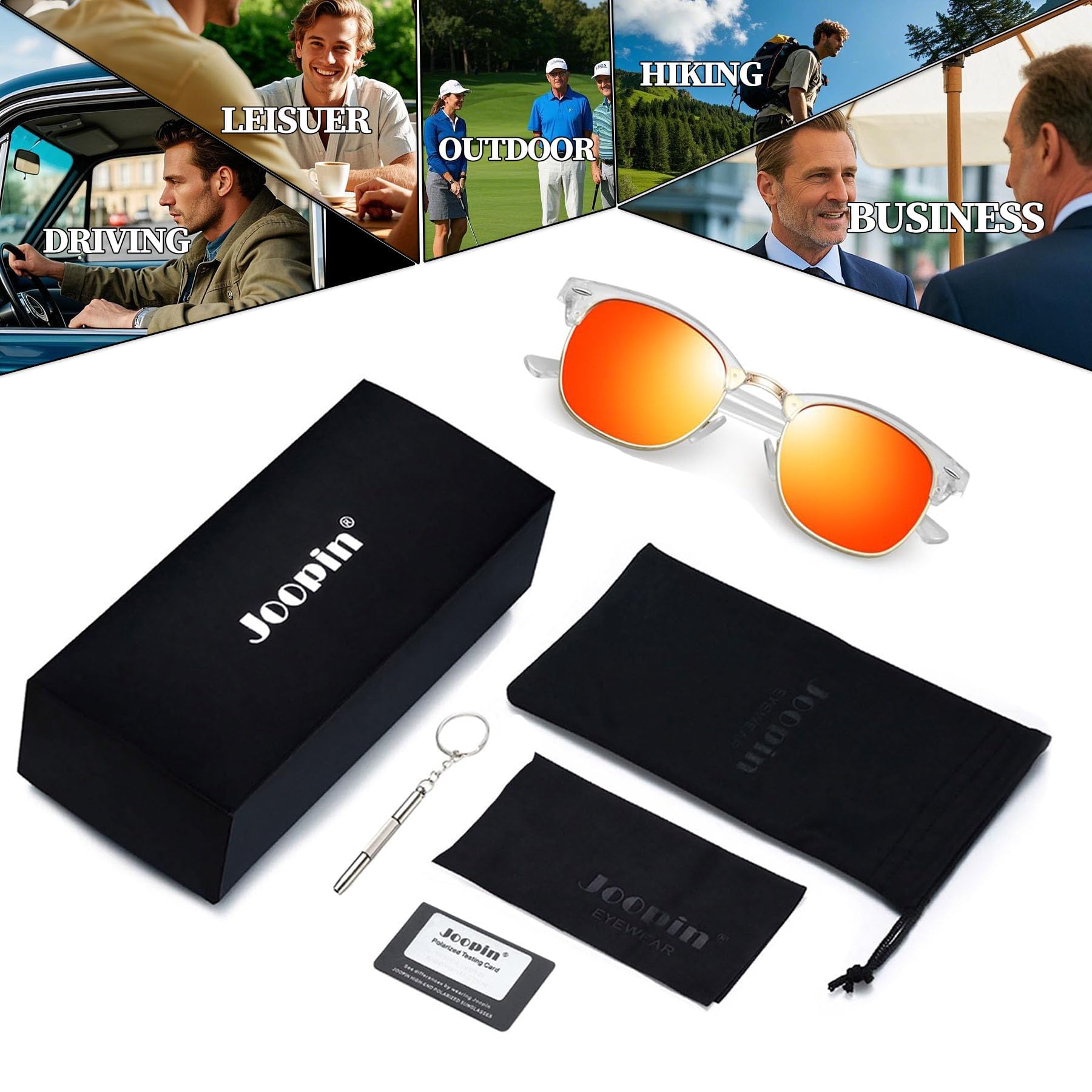Exquisite Box Packaging: Transparent frame mirror red sunglasses x 1soft box x 1/ exquisite bag x 1/lens cloth x 1/ screwdriver x 1/ polarized testing card x1. Step out in style with stylish sunglasses. packaged already, making it a wonderful yet practical festival idea for friends and family! Joopin focuses on fashion womens sunglasses and mens sunglasses. Click and get your quality and cheap sunglasses now