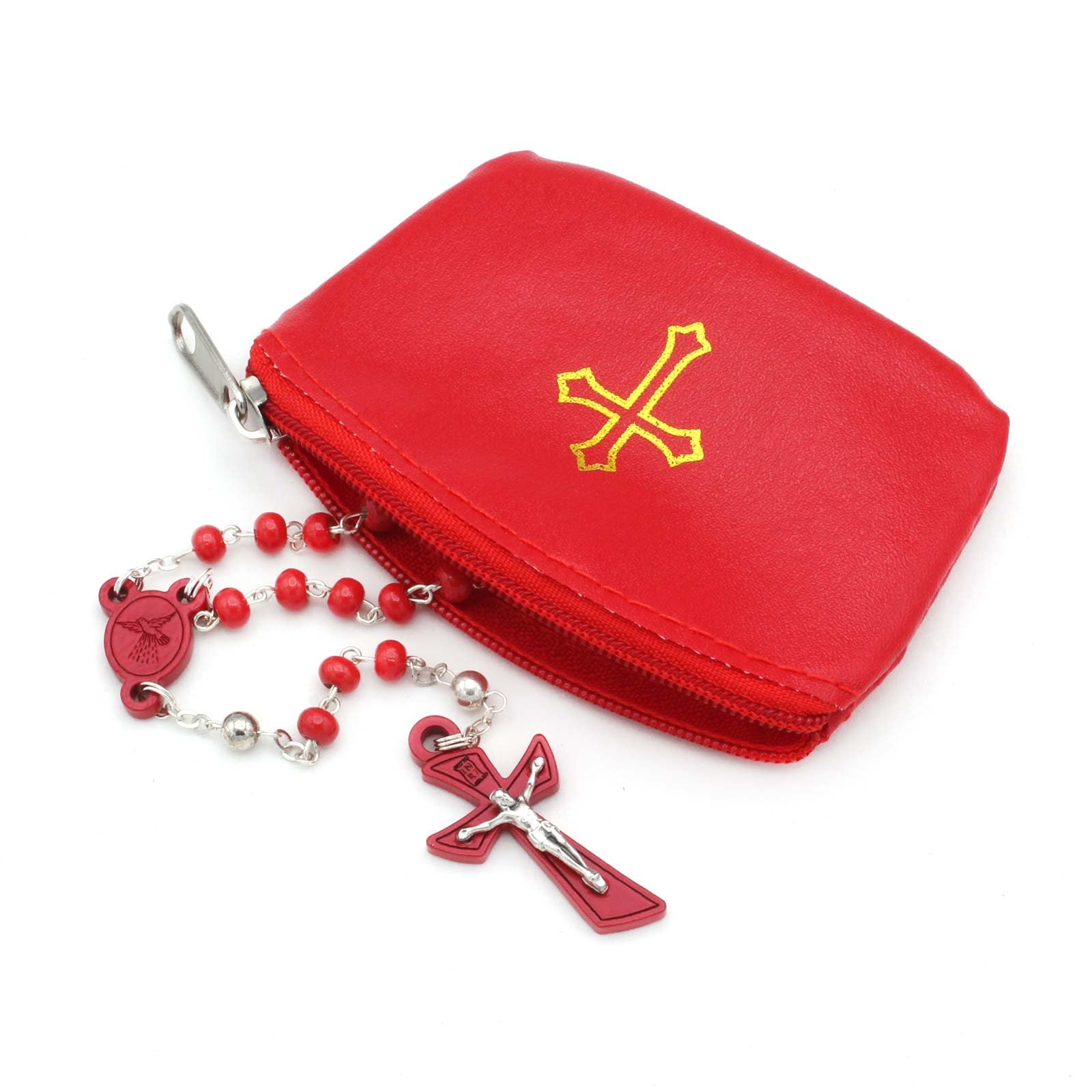 Red Leatherette Rosary Pouch with Zipper