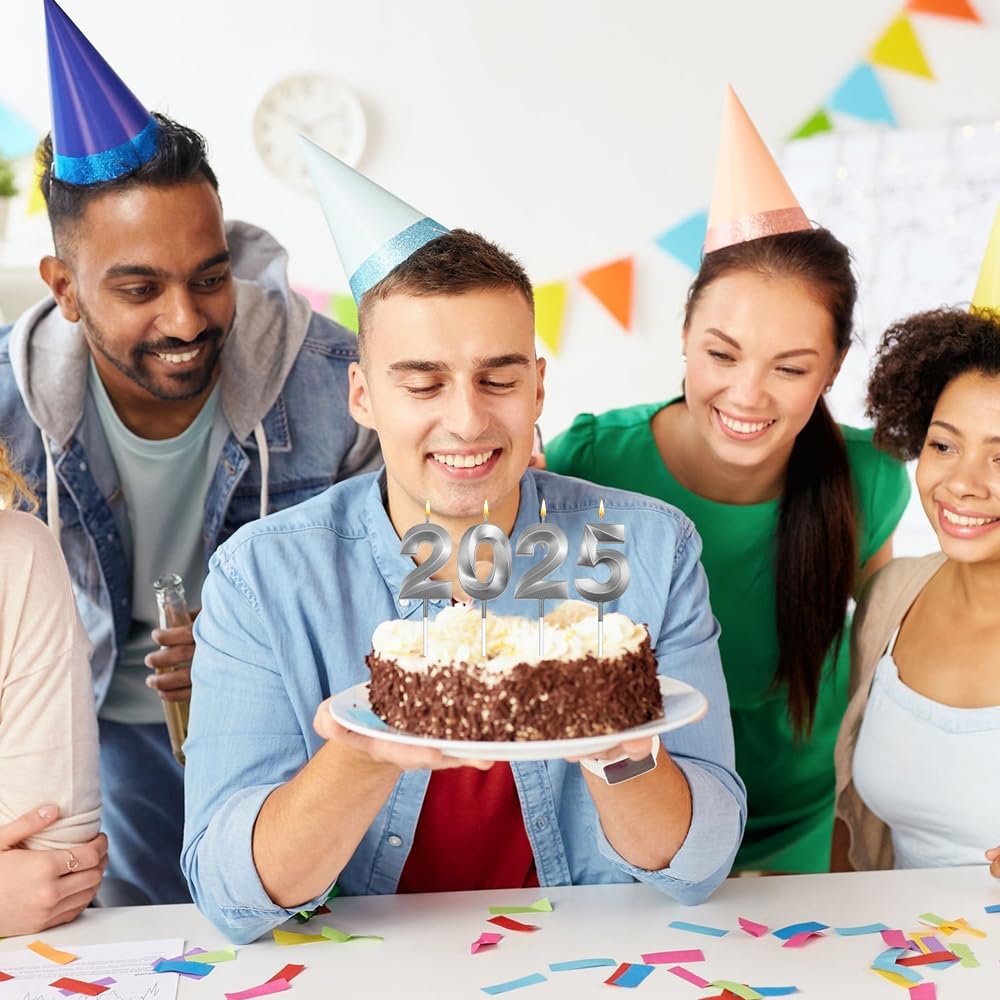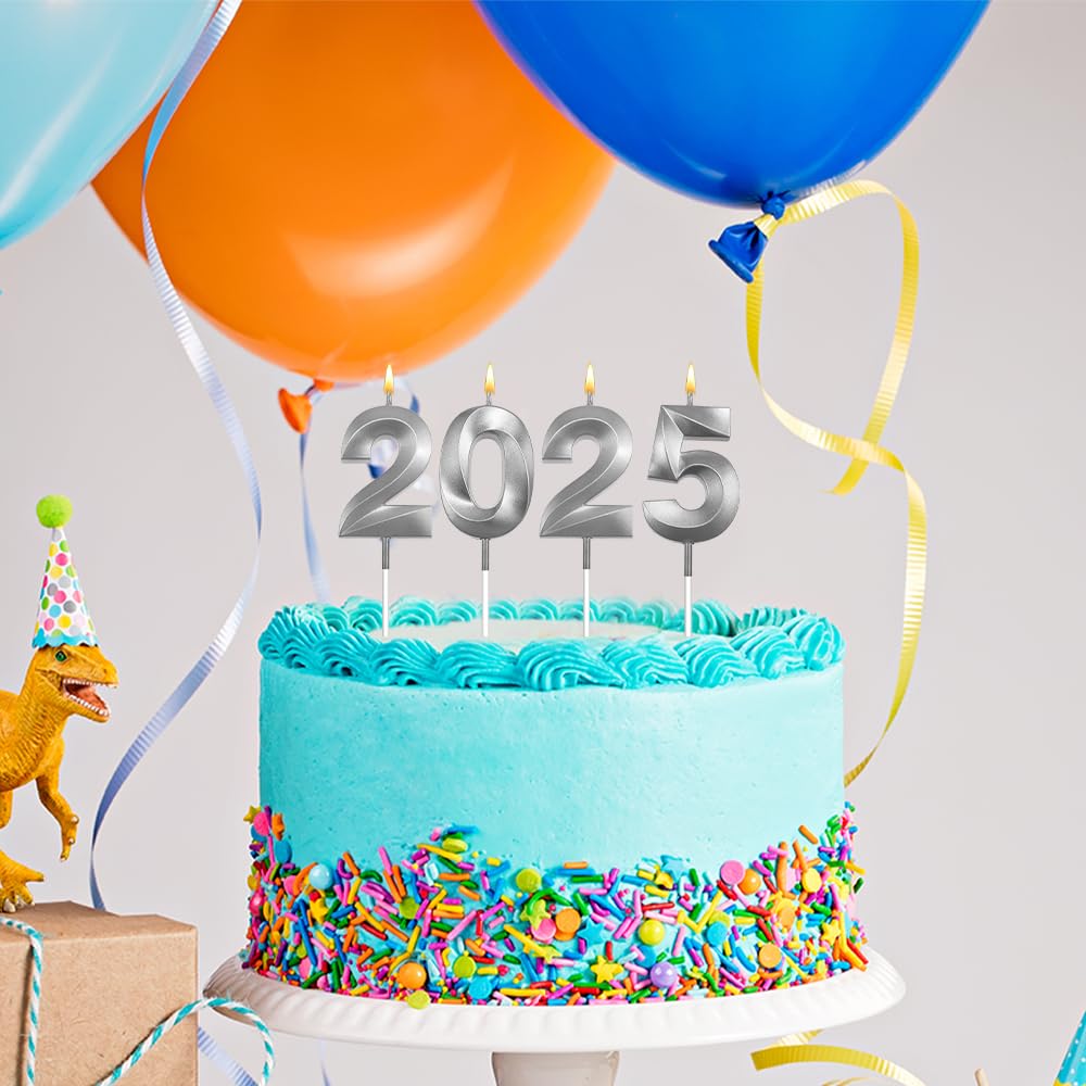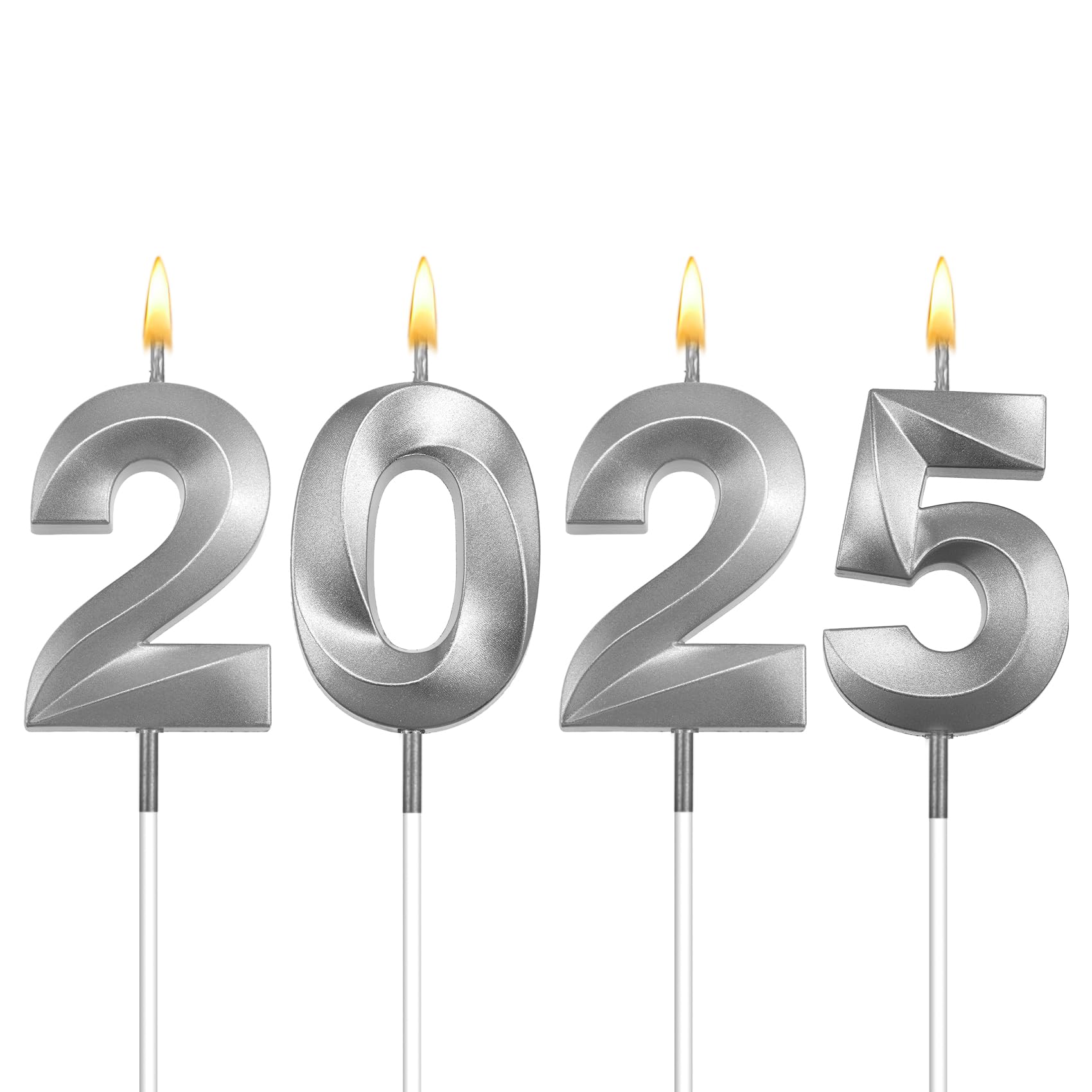 Graduation Candle 2025, 4 Pcs 3D Visual 2025 Silver Number Candles for Graduation Cake Decorations, Class of 2025 Cake Topper, 20, 22, 25, 50, 52 Birthday Candles Happy Birthday Cake Toppers