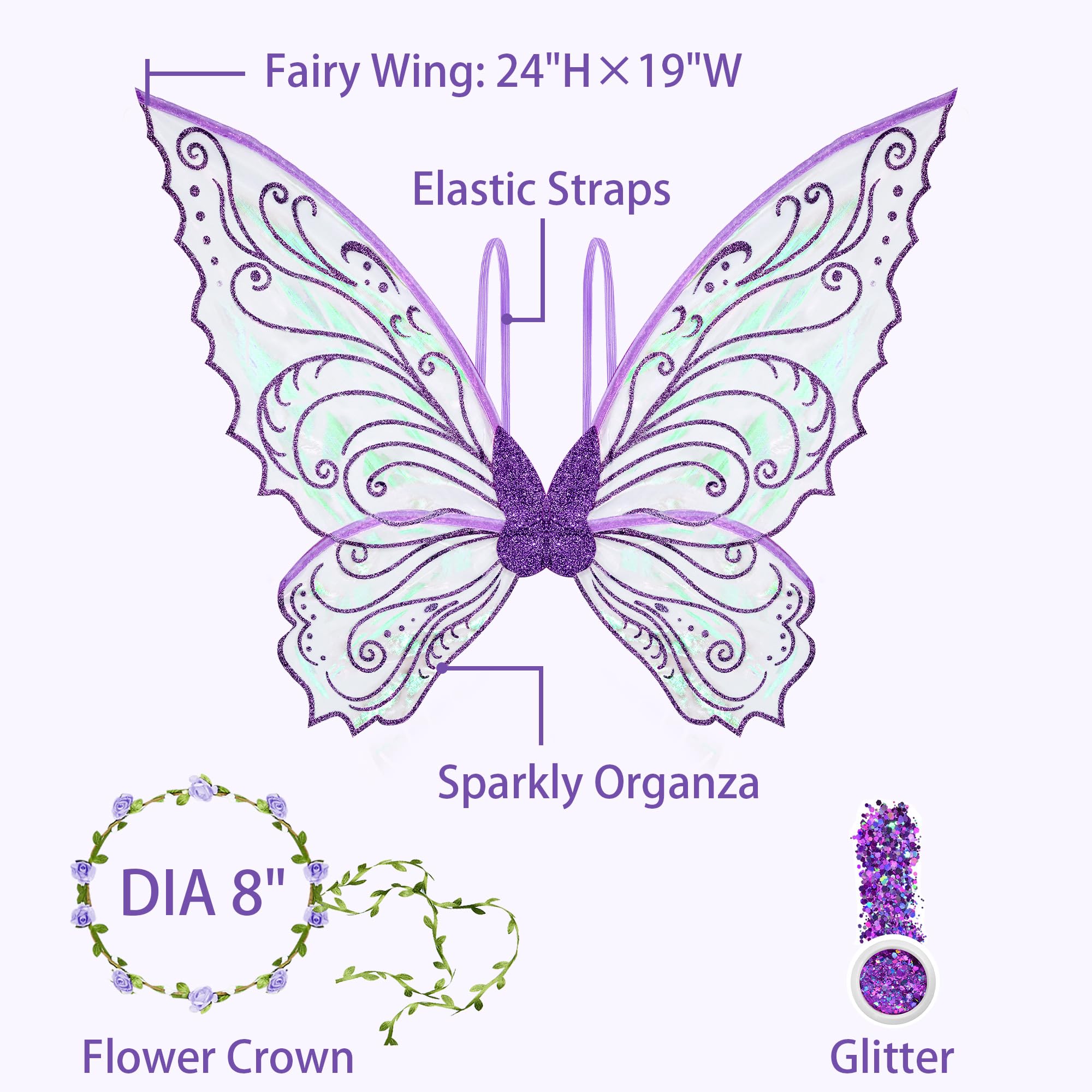 Fairy Costume Wings: Are you worried about what to dress up as? Wearing fairy costume wings will make you stand out. The fairy costume wings set will make fairy dresses for women more eye-catching.