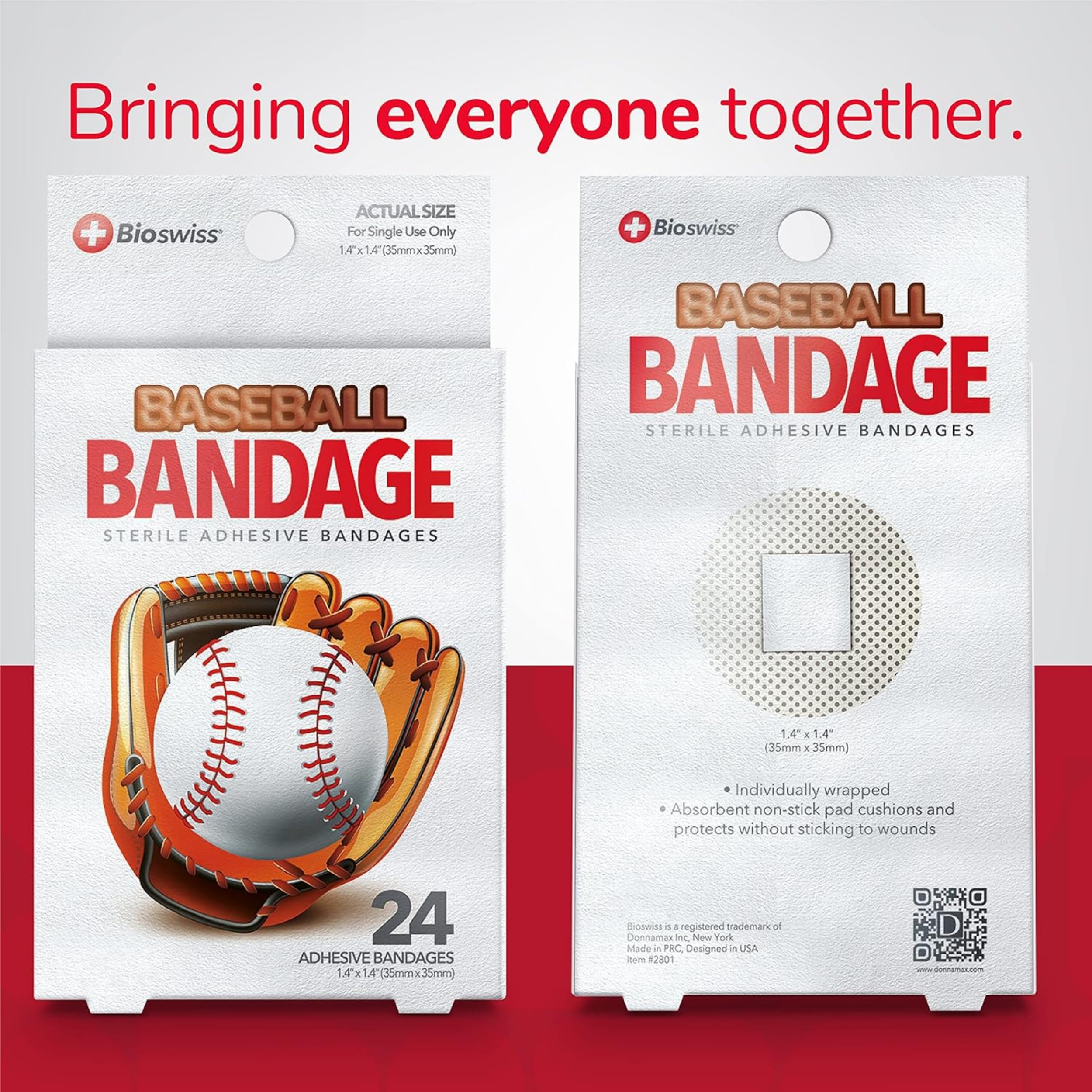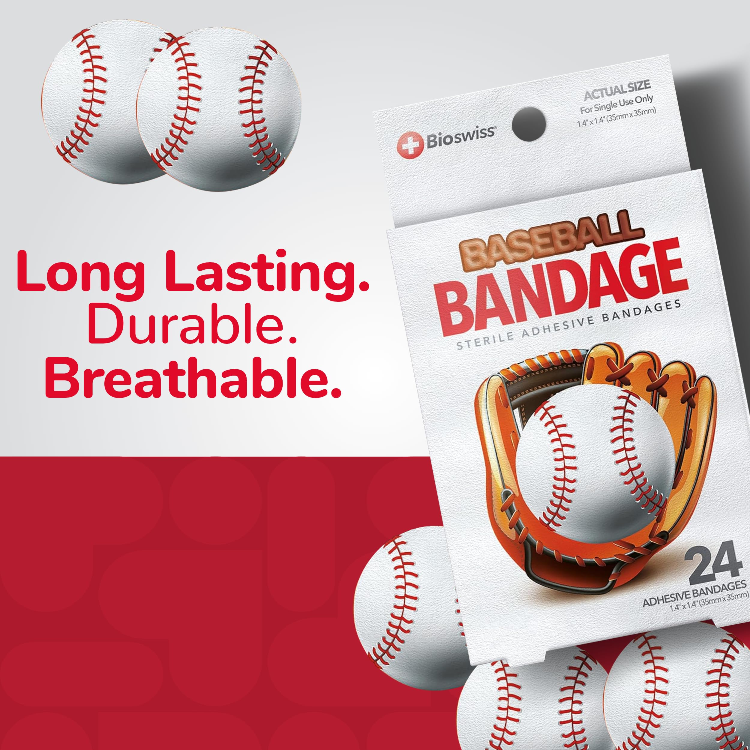 24 BASEBALL KIDS BANDAGES: Fun baseball-shaped adhesive bandages pack helps protect cuts, scrapes, and minor wounds while making healing less stressful for children
