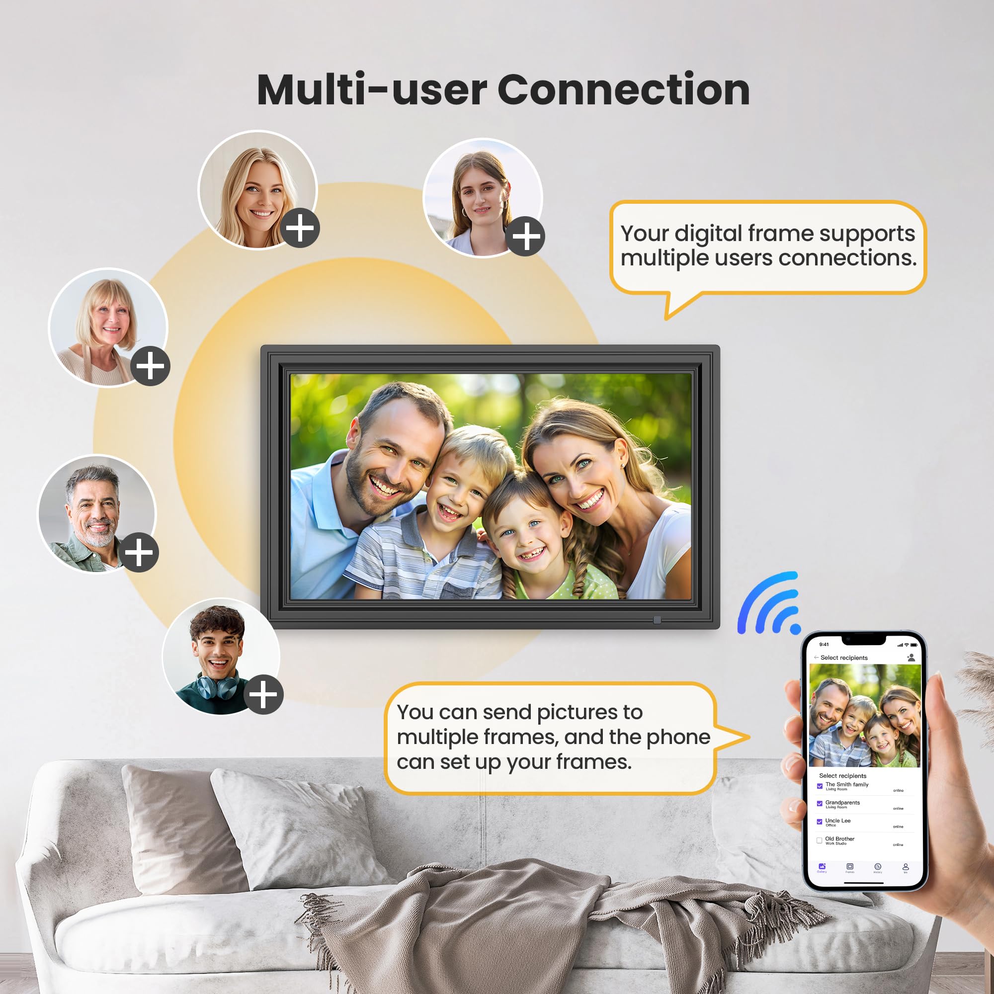Share Photos and Videos Instantly: Send photos/videos securely to your 15.6 inch digital frame via WiFi using the free "Uhale" app. Only invited users can access your photo frame, keeping your memories private and safe. Download the "Uhale" app on iOS and Android store to share your precious memories from now on.