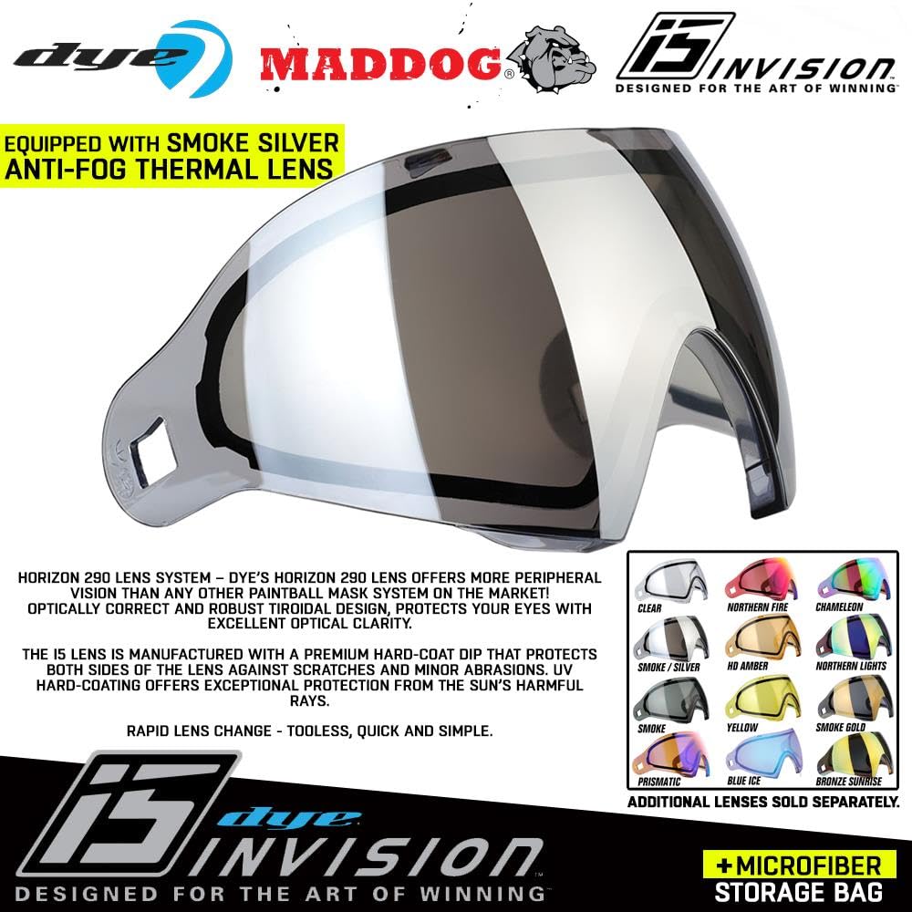 Includes Maddog Microfiber Storage Bag: This combo includes a Maddog microfiber storage bag to keep your Dye i5 Paintball Mask clean and protected when not in use. The perfect combo to maintain your mask's condition and ensure longevity.