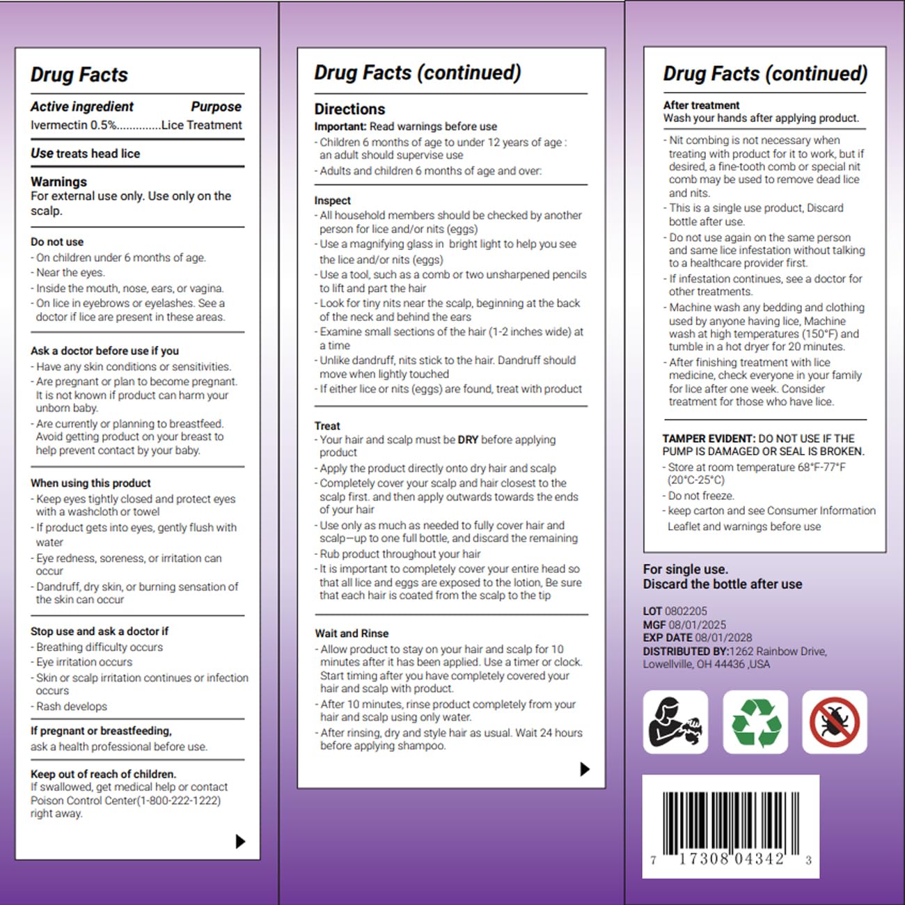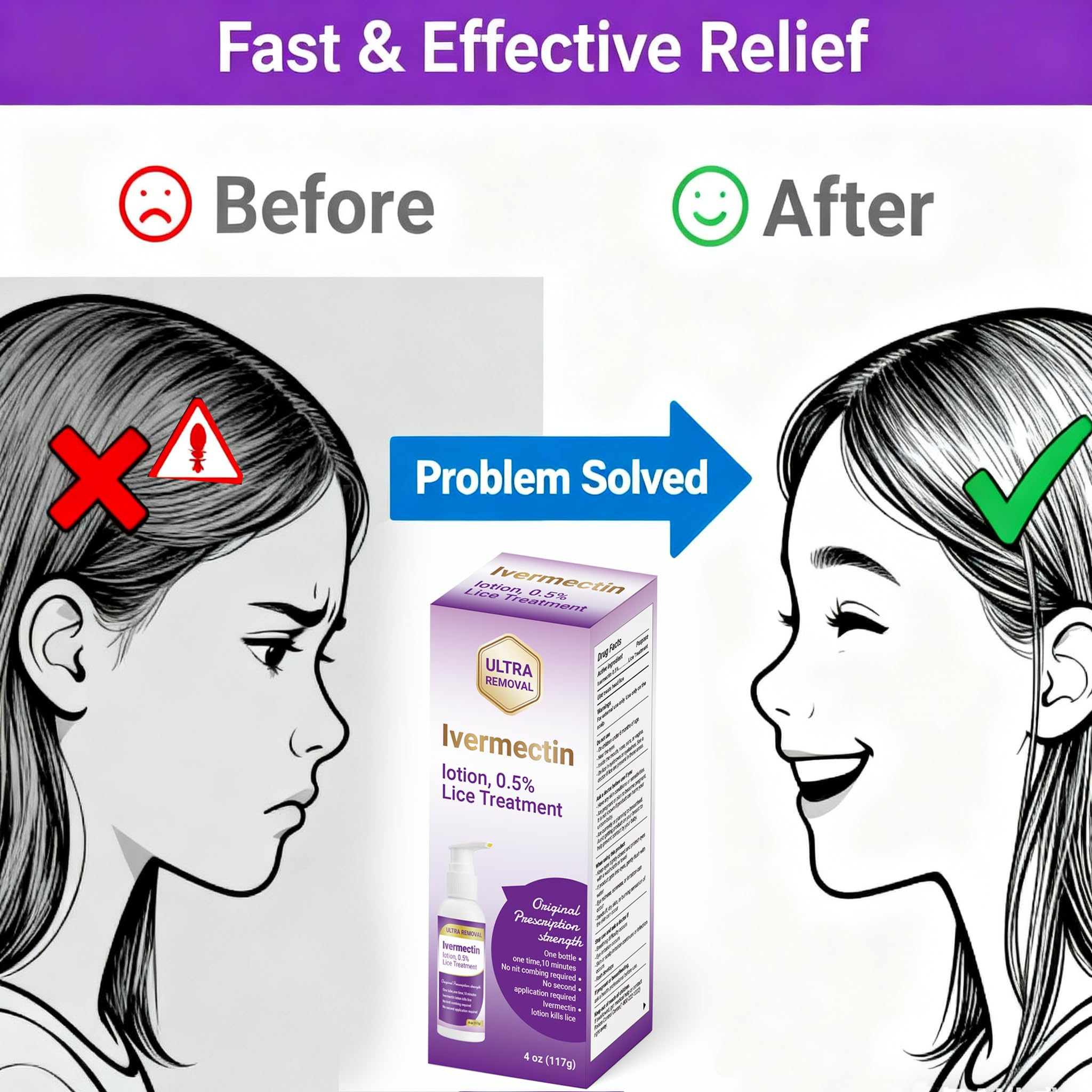 Ivermectin Lotion, 0.5% Lice Treatment, is effective for treating Head Lice. Item contains one tube that you use one time. No Nit Combing Necessary. Treats Head Lice with a single application. No second application required, and Satisfaction guaranteed. Just put on dry scalp wait ten minutes and then completely rinse your head and scalp. After rinsing, dry and style as usual. Wait 24 hours before applying shampoo.