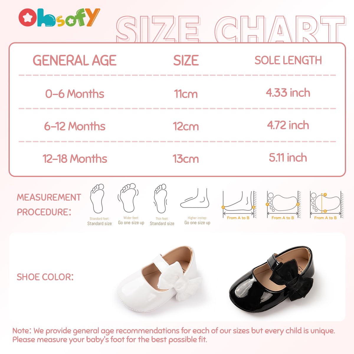 Size tips: Our priority is to provide each customer the most suitable shoes,you can choose your size carefully according to the Ohsofy size table.For babies with fat feet, please choose a larger size. Thank you