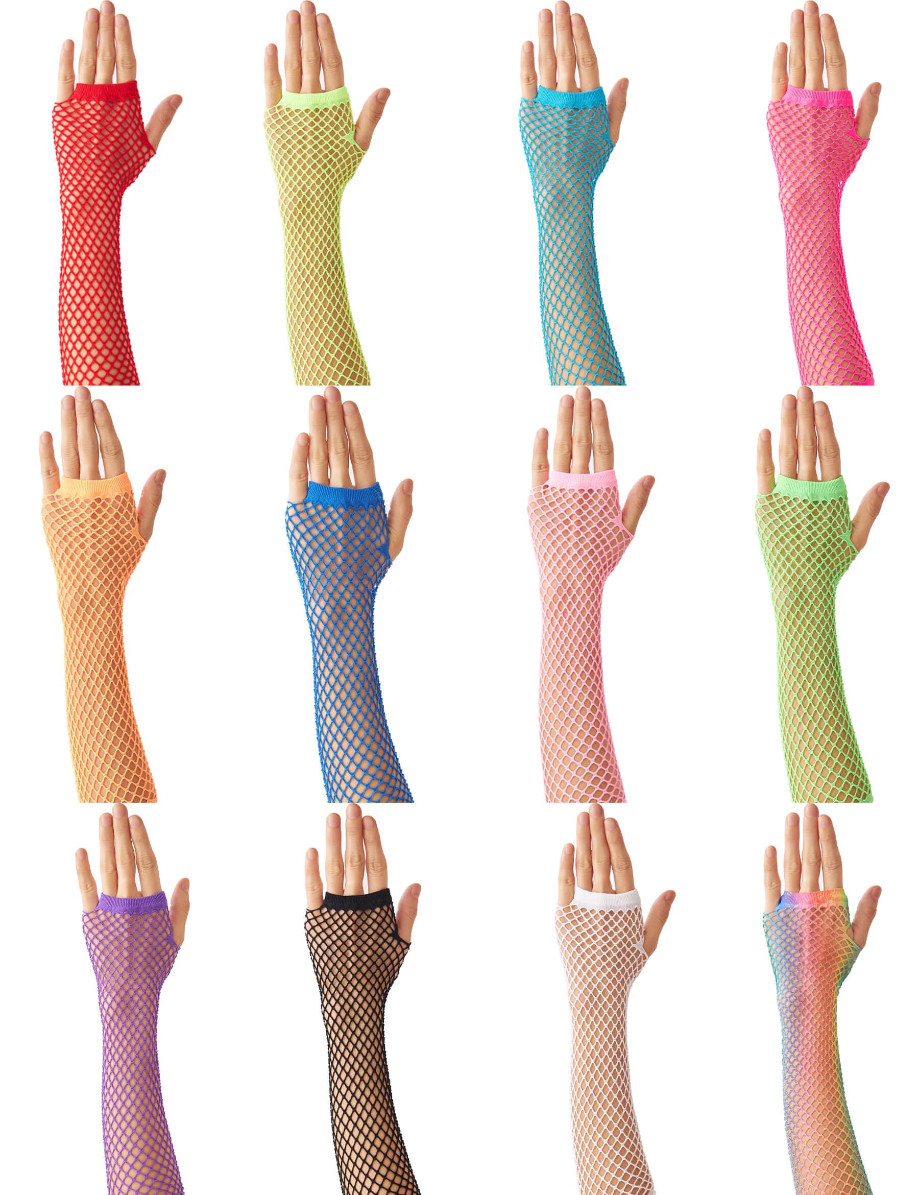 Enhance your 80's party outfit with our vibrant and fashionable fingerless short fishnet gloves emo accessories, available in 12 colors. Perfect for completing your retro look and standing out from the crowd at any gathering or event.