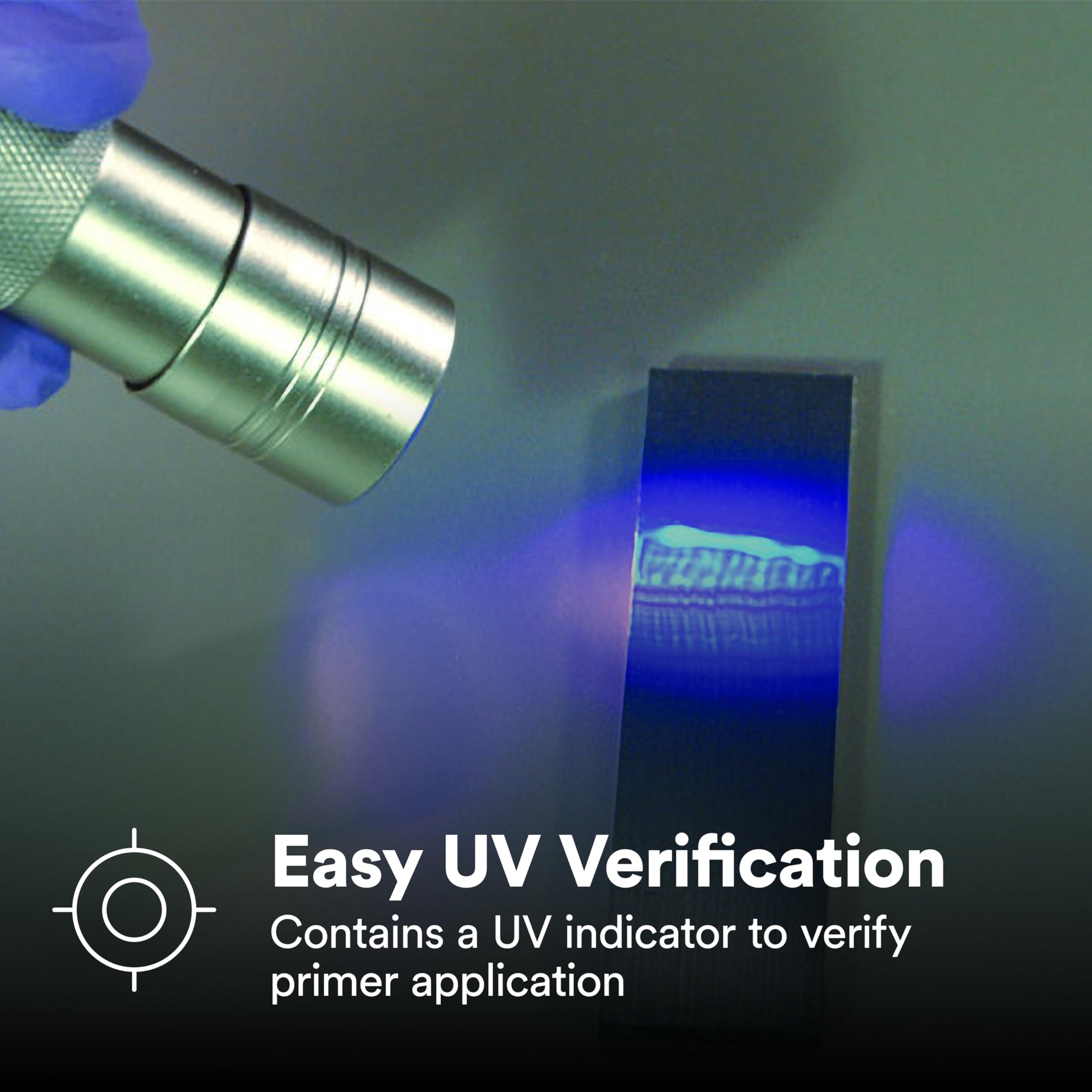 UV-INDICATOR: 3M VHB Tape Water-Based Promoter UV features the inclusion of a UV indicator, making it visible under UV light. This allows for easy verification of promoter application, helping your ability to improve quality control.