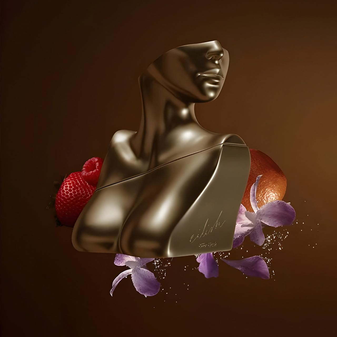 The beautifully gilded bottle is a fusion of angles and soft curves inspired by classic sculptures and the human form, with a design that represents the chest, neck, and collarbone