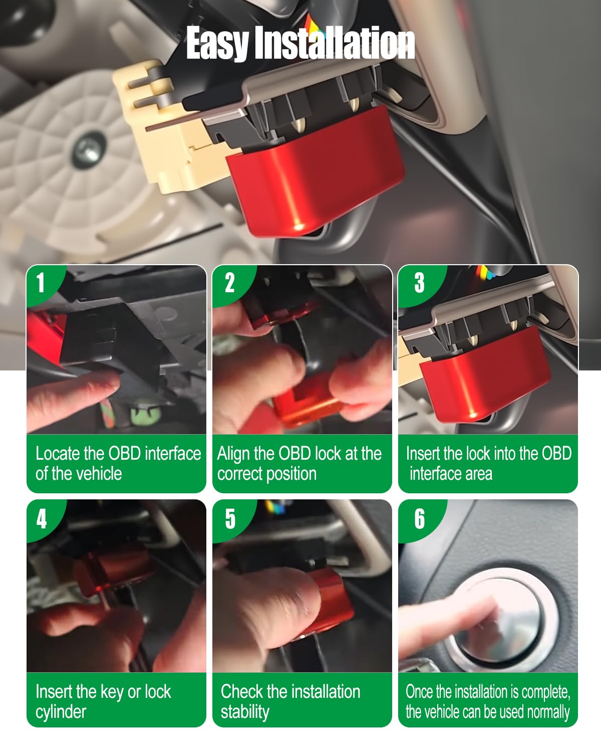 Easy Installation: OBD2 port lock with the proprietary tool, it installs quickly and locks the OBD2 port for protection. Supports easy disassembly for maintenance and includes a key ring with anti-theft screws for convenient storage and loss prevention