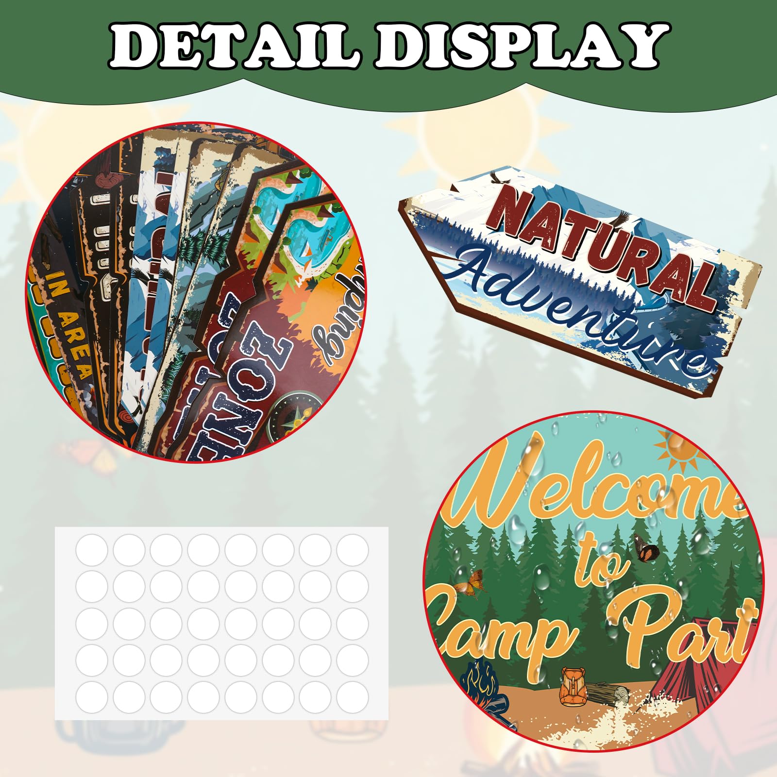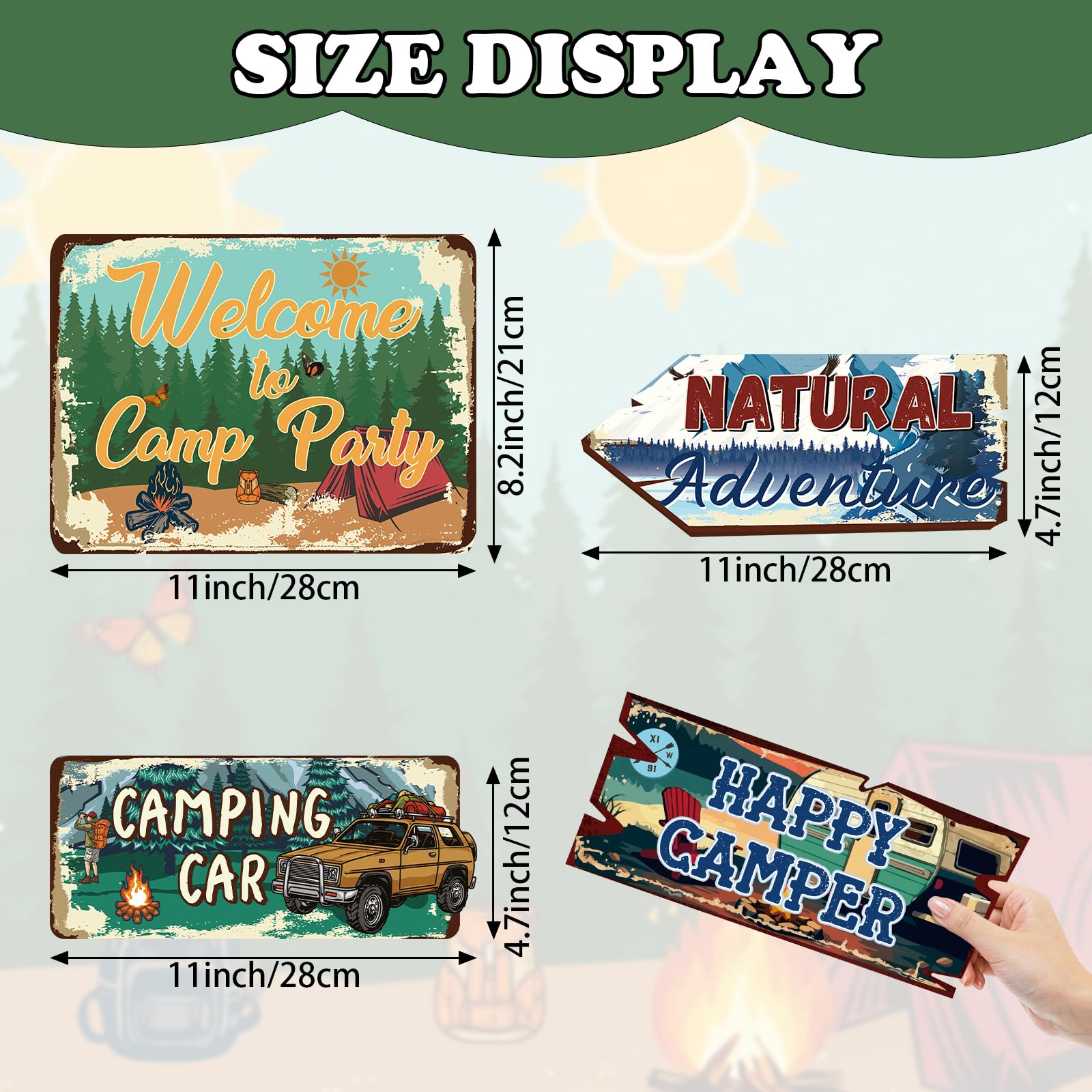 Suitable size: Camping party signs are available in different sizes as shown in the picture, camping decor are easy to assemble and can be attached to walls, windows, porches, stairs, used as entrance welcome signs, camping themed party directional signs, summer camp supplies, picnic decor, birthday photo props and backdrop