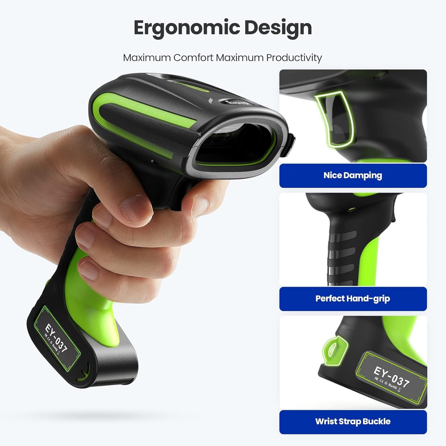 Excellent Ergonomic Design: The Eyoyo wireless barcode scanner is made from industrial-grade materials, providing an impressive level of comfort. Its heavy and comfortable grip ensures that you won't feel tired even after long periods of use. The trigger has a satisfying damping mechanism that enhances the experience. You won't want to put it down! Additionally, there is a wrist strap buckle at the back, designed for user-friendly carrying and usage. Choose the Eyoyo barcode scanner for ease and comfort