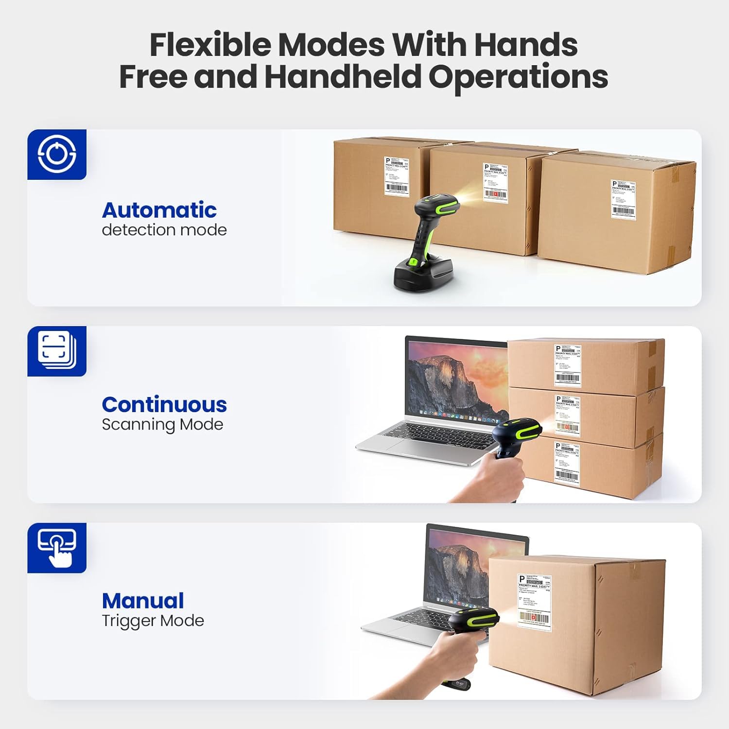 3-in-1 Connections & Widely Compatible: Eyoyo wireless barcode scanner can connect via 2.4G wireless & 6.0 Bluetooth &u USB wired. It can be connected wired. It can be connected to a variety of devices, such as smartphones, computers, POS, iPhones, iPads, and laptops. In addition, it is also compatible with various operating systems, such as Windows 7/8/10/XP, Mac OS, iOS, Android, and Linux. Note: no need for a wireless dongle, the dock connects to the device and enables wireless connection