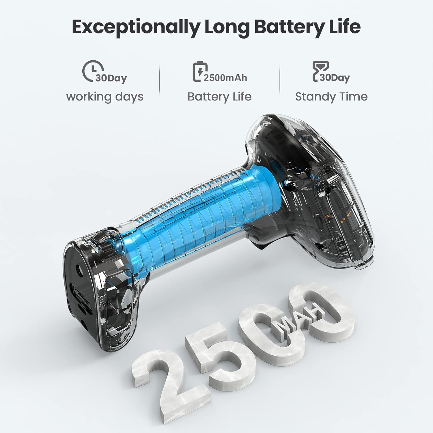 Automatic Scanning & Storage Mode: The EY-037 1D 2D QR Bluetooth barcode scanner has three scanning modes: manual trigger mode, continuous scanning mode, and auto-sensing scanning mode. Flexible mode with hand-free and handheld operation. In addition, there is a storage mode. Storage mode can be used when you are out of range of Bluetooth and wireless connectivity. Supports storage of up to 100,000 barcodes. Note: Before use, please read our user manual in detail