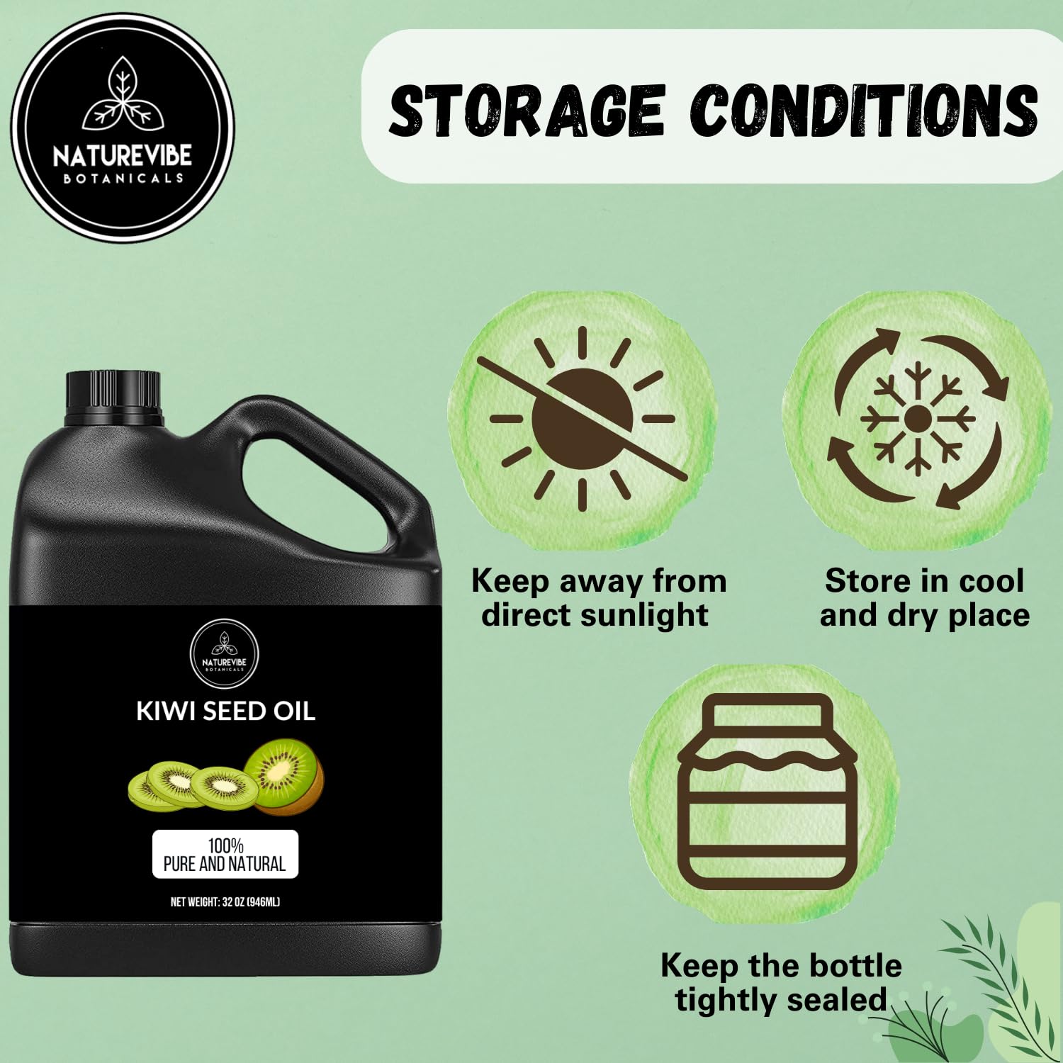 ✅ Naturevibe’s Kiwi Seed Oil is 100% pure, free from fillers or additives, and is specifically crafted for relaxing massages and skin care.