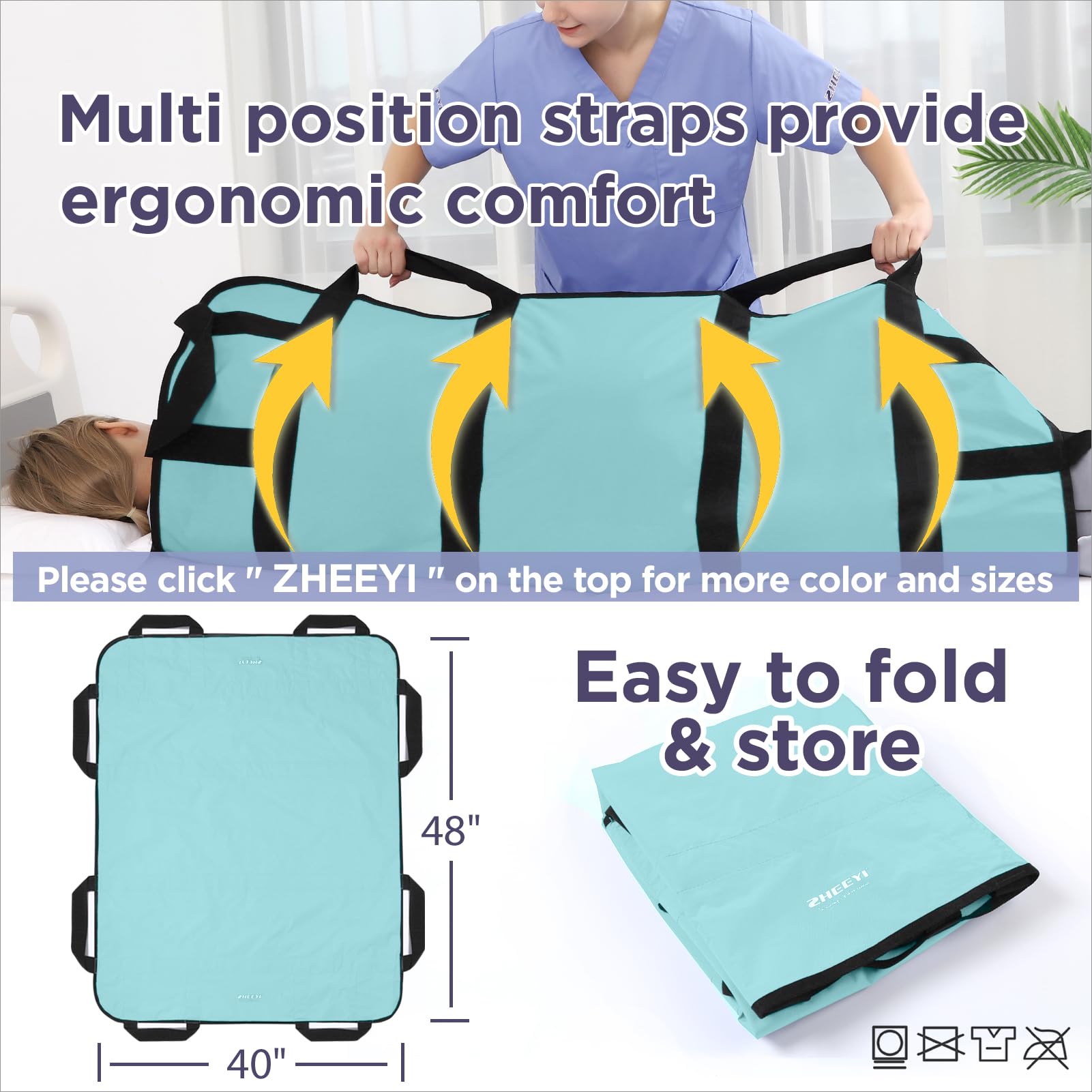 DISCOVER THE MOM-APPROVED TRANSFER SHEET! Maintaining the ZHEEYI 48" x 40" bed sheet for loved ones is a breeze, since it’s 100% machine-washable. All you have to do is slip it in your washing machine, natural air drying and reuse!