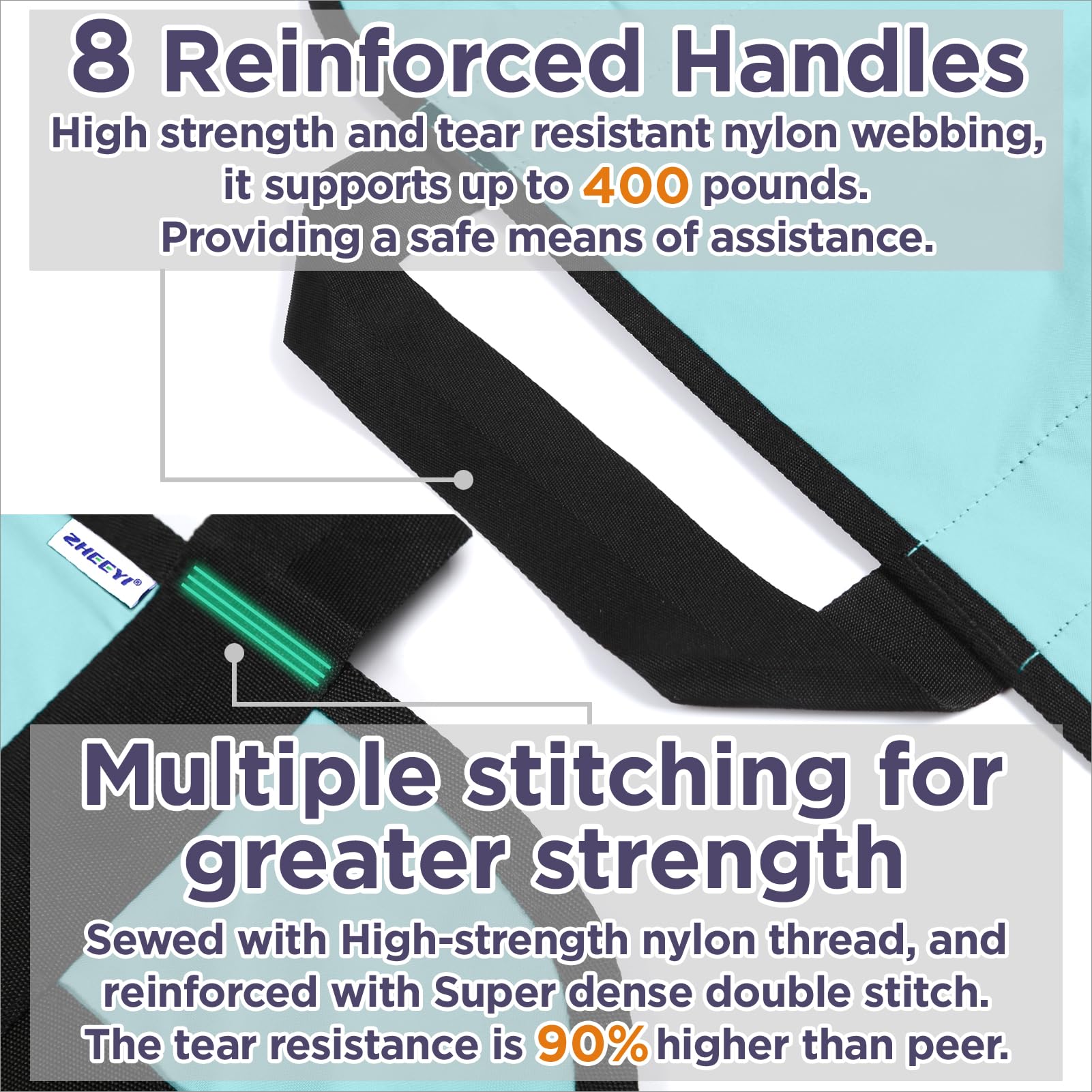 TURNING, REPOSITIONING & LIFTING MADE EASY! Our double-sided nylon fabric transfer sheet is equipped with 8 heavy-duty, reinforced handles that will help you transfer, reposition, turn or lift any people with limited mobility with relative ease.