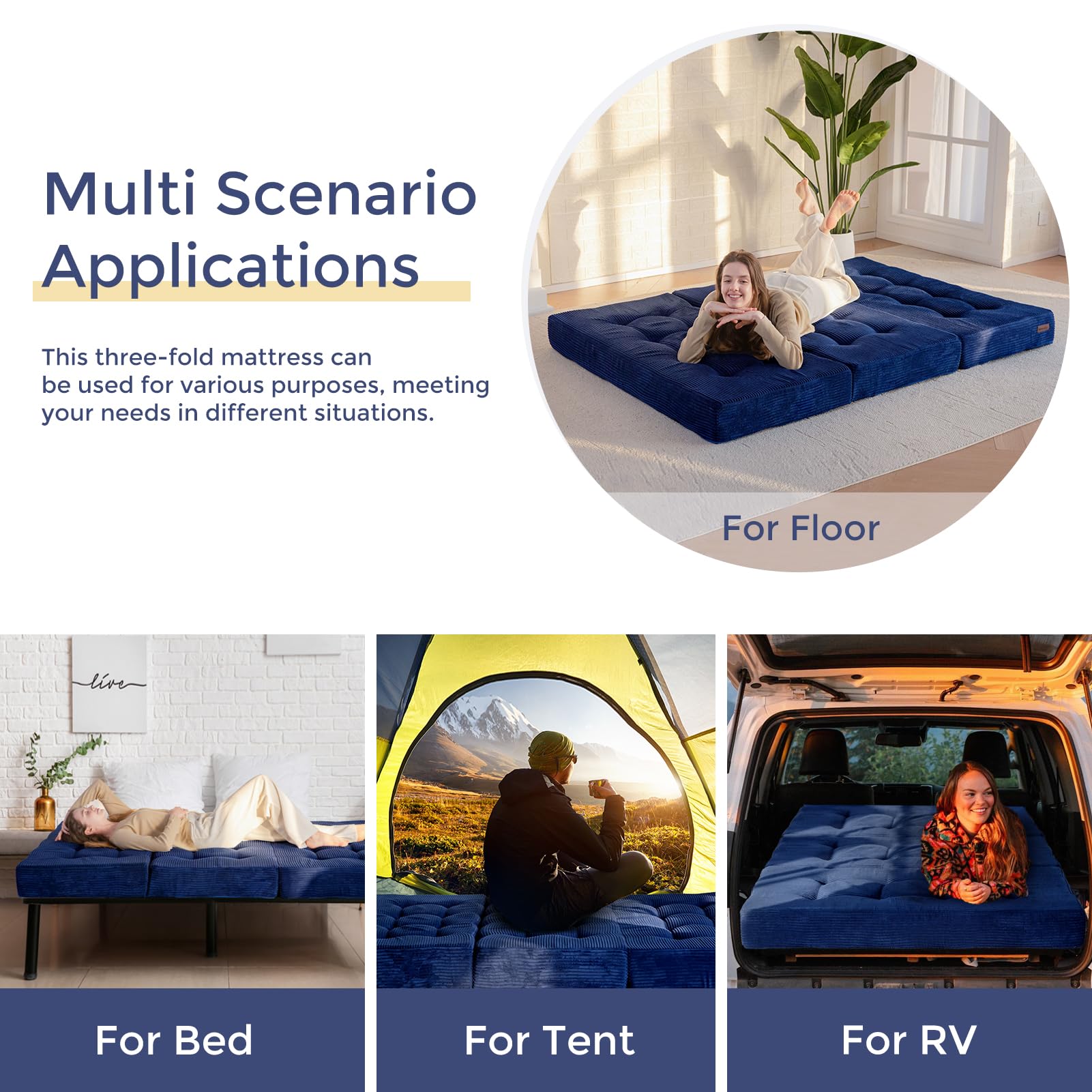 Tufted Craft Design: The topper of the foldable triple-fold mattress, made of ultra-soft and breathable corduroy fabric on the top, can keep you feeling fresh. The tufted crafting design adds a personalized style to the foldable mattress and also brings fun to your life