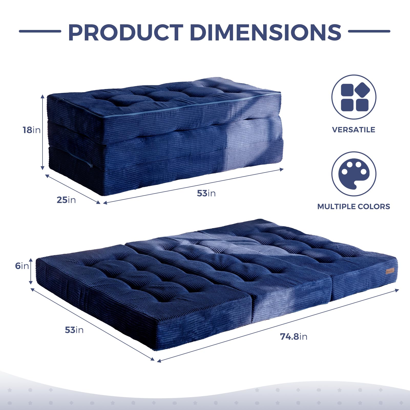 Tri-Fold Mattress: Our foldable triple-fold mattress can be easily unfolded into a spacious and comfortable seat cushion. When folded, it is compact and takes up little space. Whether it's for indoor lounging, picnics, yoga, or everyday home use, it's effortless to use and allows you to enjoy comfort anytime, anywhere