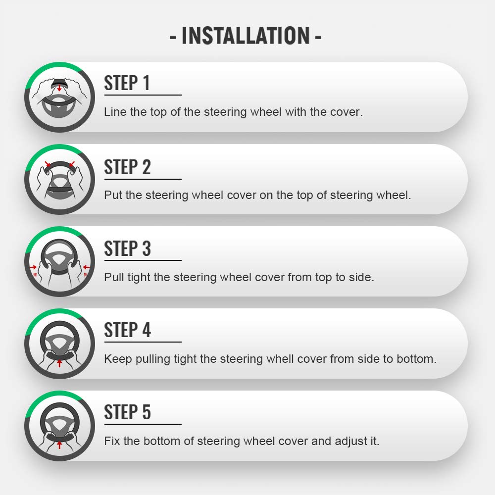 Easy Installation: You can heat the car wheel cover in the sun or with a hair dryer, places the cover on the top of the steering wheel and uses both hands to slowly tighten it on both sides until it fits perfectly with the steering wheel. Flexible disassembly, won't affect the daily cleaning of your car, which will help improve your health and living standards.