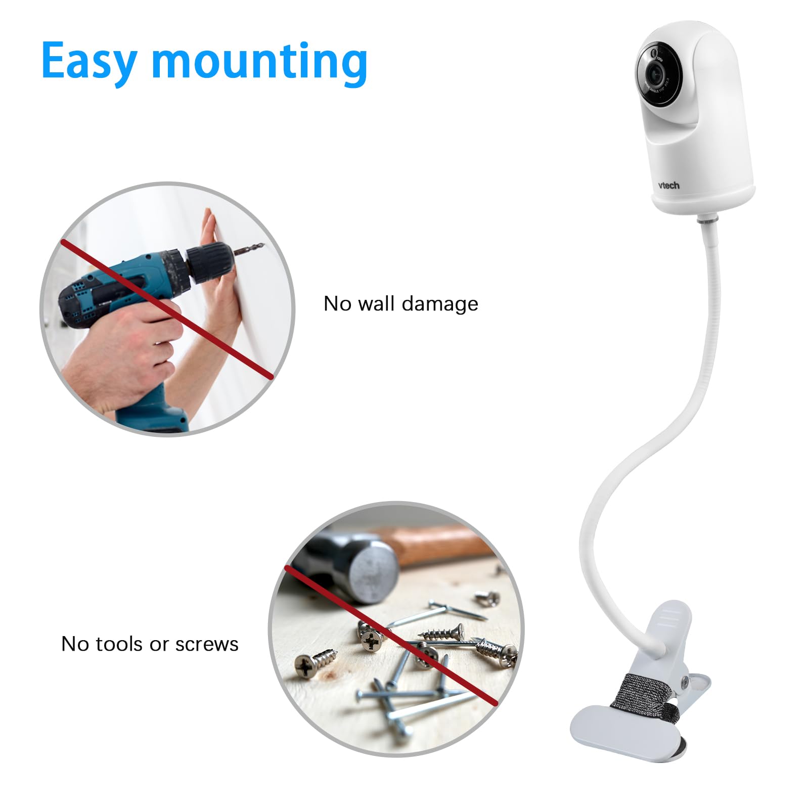 Easy to use. You only need to bend and rotate the gooseneck part of the bracket. It can be wrapped around any surface, such as a crib or metal pole. Change the position of the vtech baby monitor to suit your needs for the best viewing experience. No drilling, no screws, and no damage to walls.