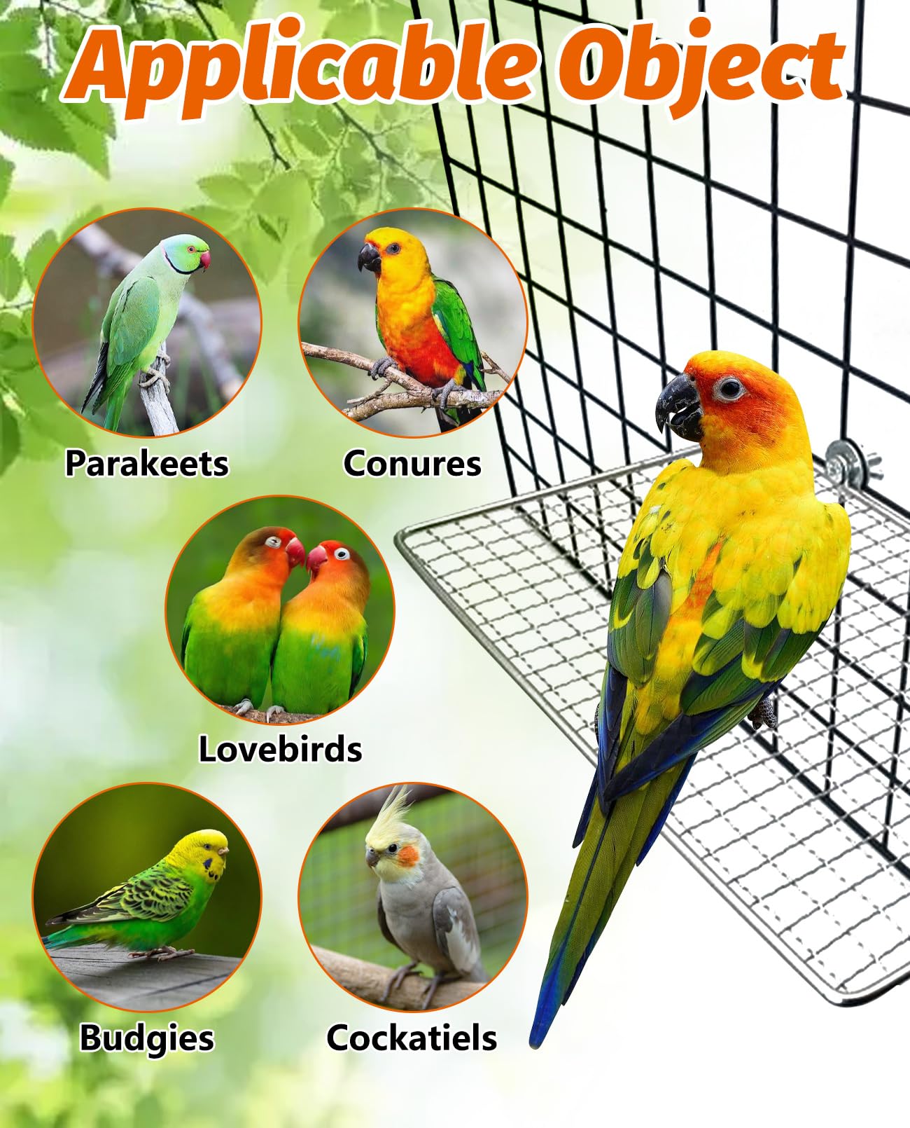 Used Object: Stainless steel shelves for bird cage is suitable for smaller animals, such as parakeets, budgies, conures, cockatiels, and lovebirds