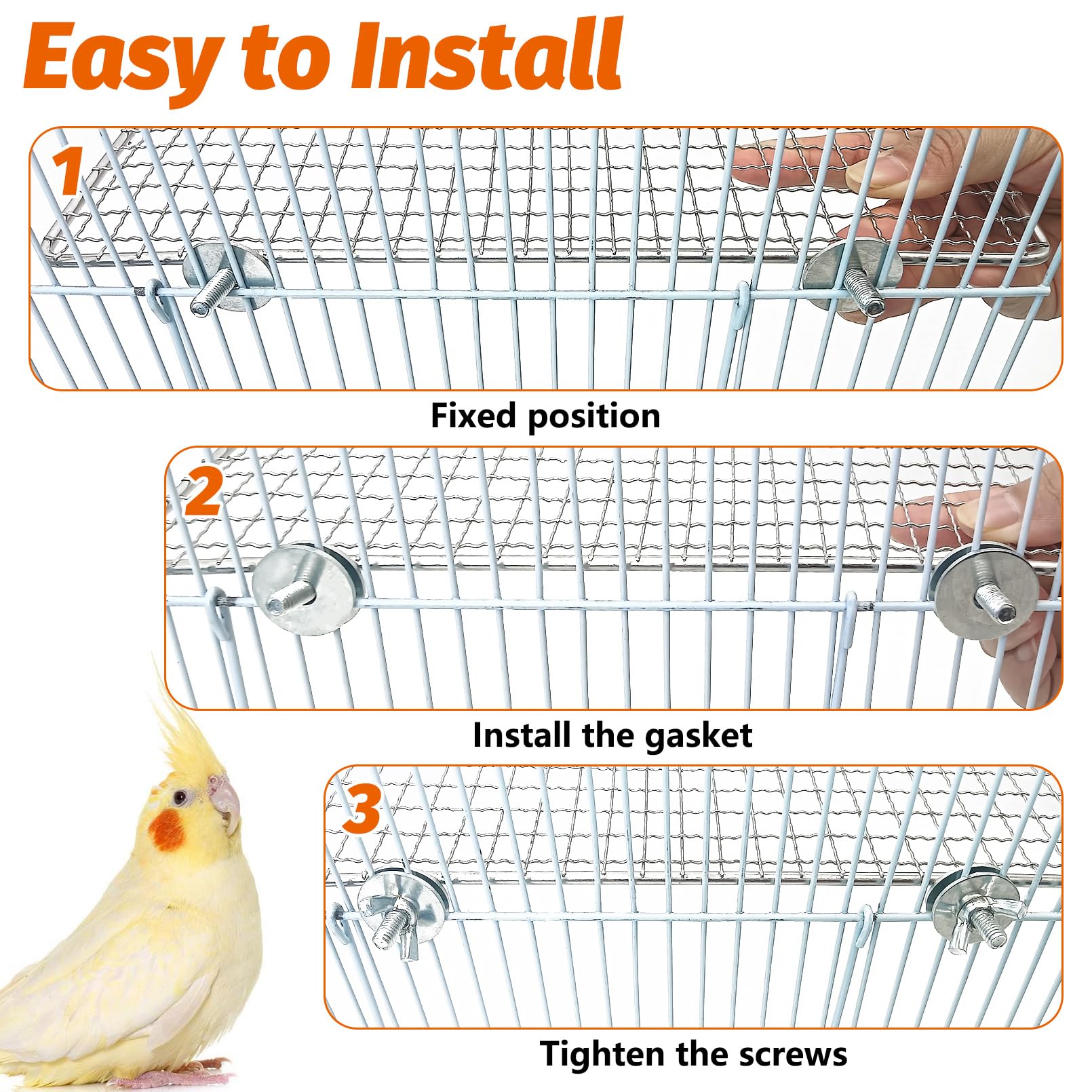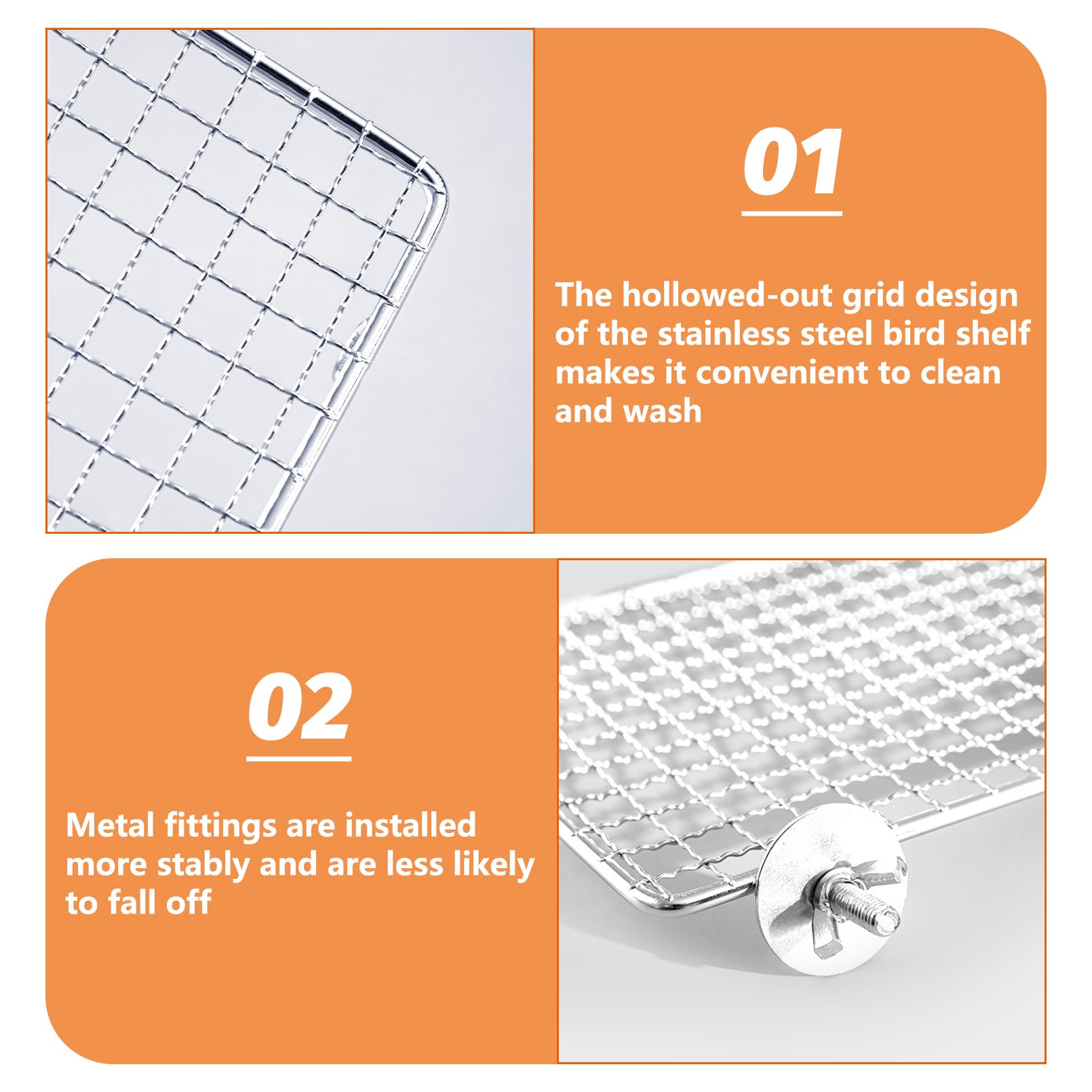 Easy Installation: Bird perch platform stand adopt double fixed stainless steel accessories, convenient for installation or disassembly. Just place bird perch stand Platform in the appropriate position in the birdcage and fix it with nuts. It won't fall off easily