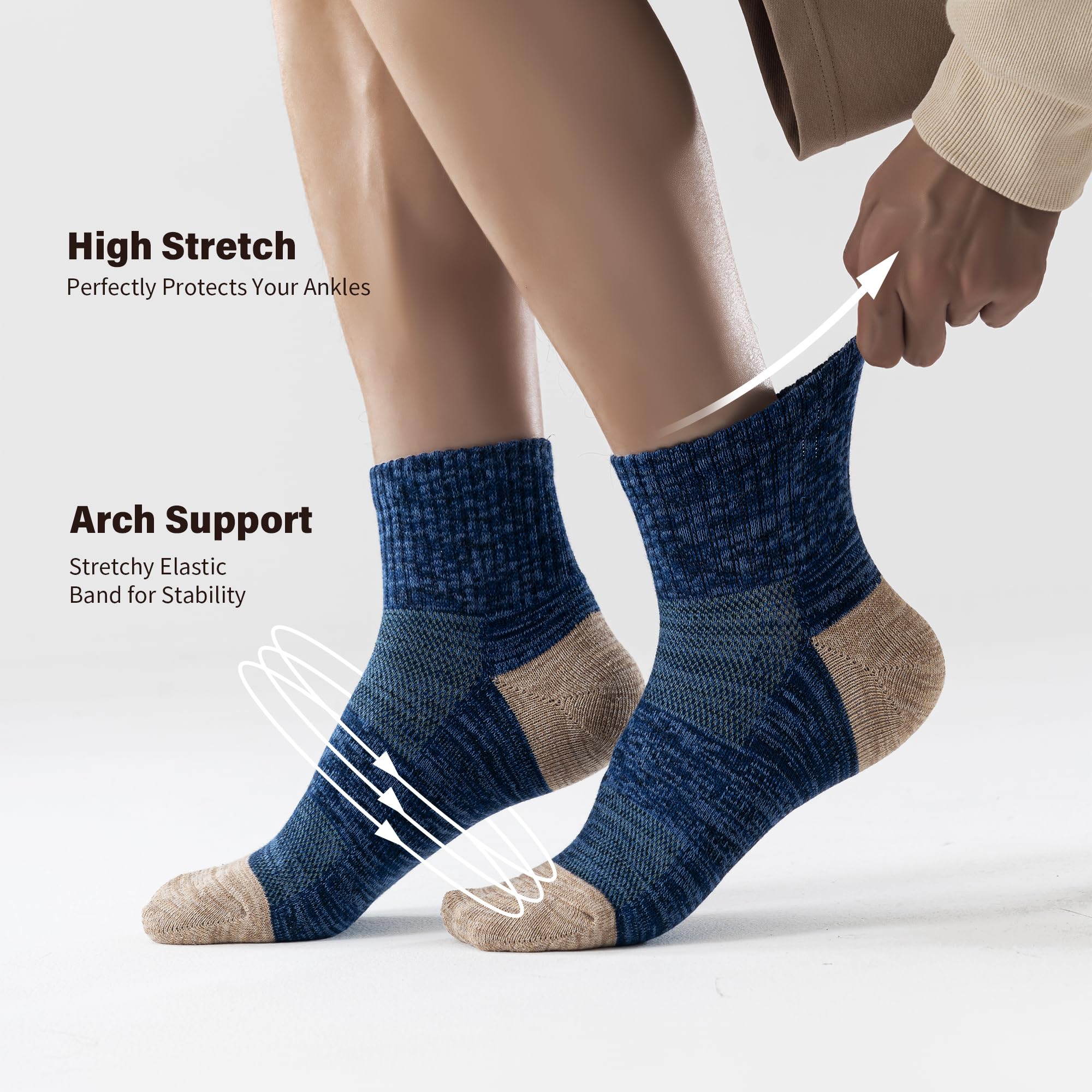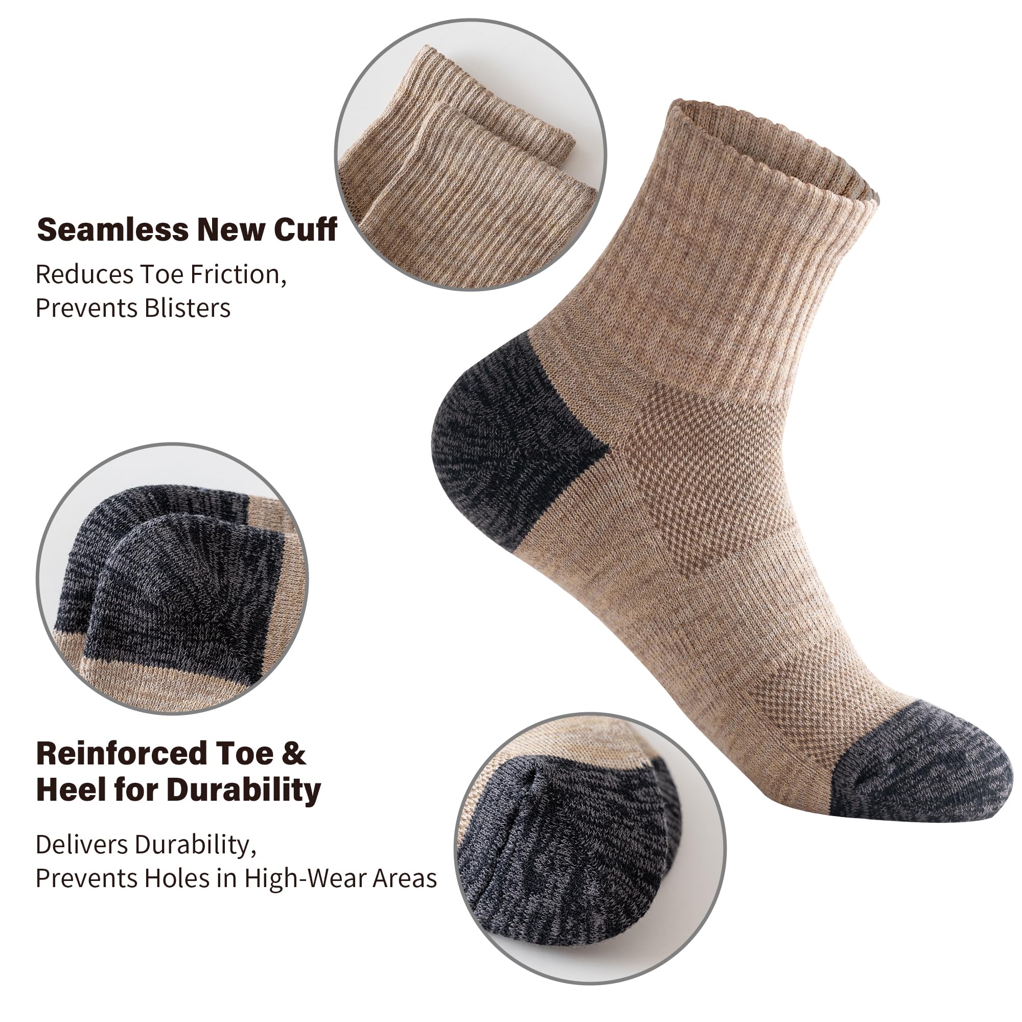 Reinforced Durability for Long-Lasting Wear:Built to withstand daily demands, these socks are reinforced where it matters most. The double-stitched heel and toe areas resist wear and tear, effectively preventing holes and thinning. They reliably maintain their shape and comfort through countless washes, proving to be a durable staple in your daily rotation.