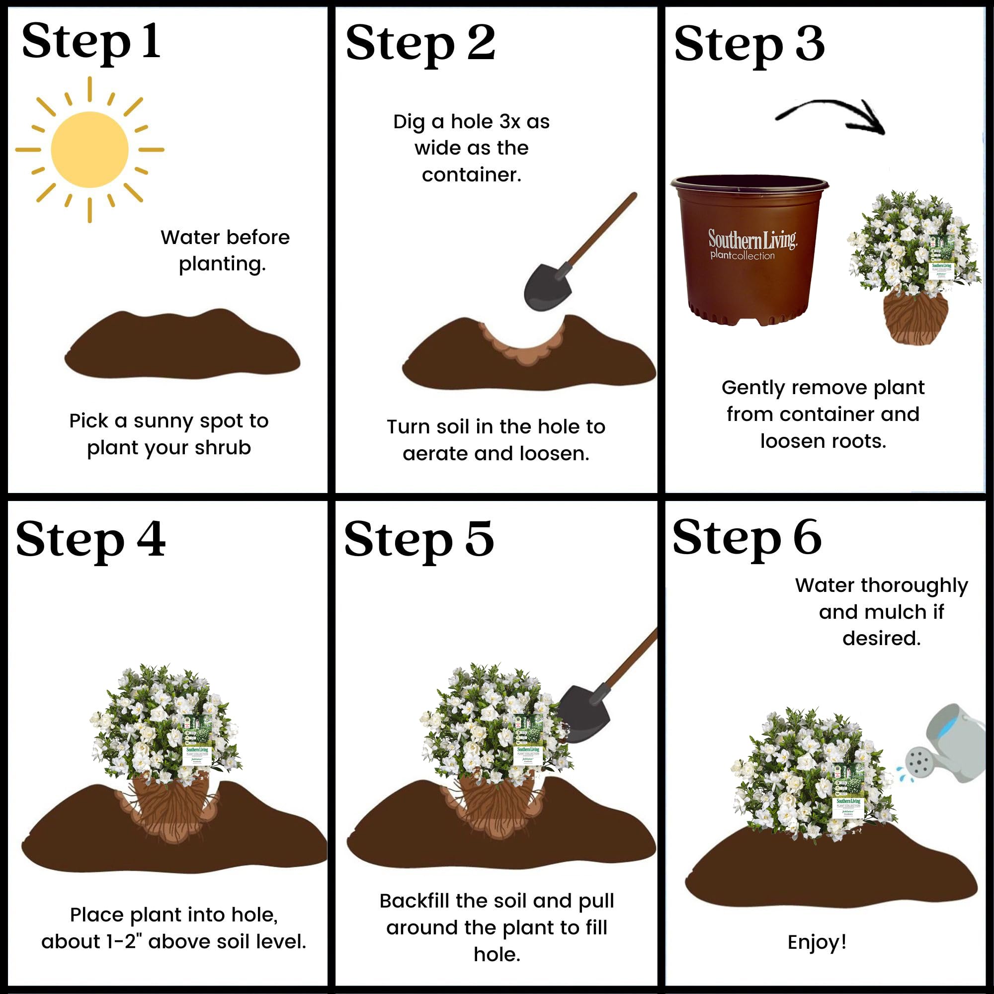 A charming improvement on a Southern favorite! Most people plant gardenias for their extravagantly fragrant blooms, and the Jubilation is just about as aromatic as they come. It produces delightful white double blooms with intoxicatingly rich aromas. It has a large initial bloom in late spring, and then reblooms periodically through summer and fall. Year after year, you’ll never get tired of the sweet scent of the Jubilation Gardenia. Additionally, this selection has a highly moderated growth habit and is remarkably easy to maintain once established in your garden or landscape. It reaches only 3-4′ H x 3′ W at maturity. No pruning required! However, feel free to provide a light trim after its first bloom cycle of the year. Use it as an accent, container, hedge, or slope planting, you can’t go wrong. Line a pathway with them and enjoy their scent as you let them guide you along. Another popular way to use this Gardenia is as a mass planting. You’ll seldom be short on blooms from summer to fall with a large group of these beauties. Furthermore, try it as a fragrant addition to cut flower arrangements.