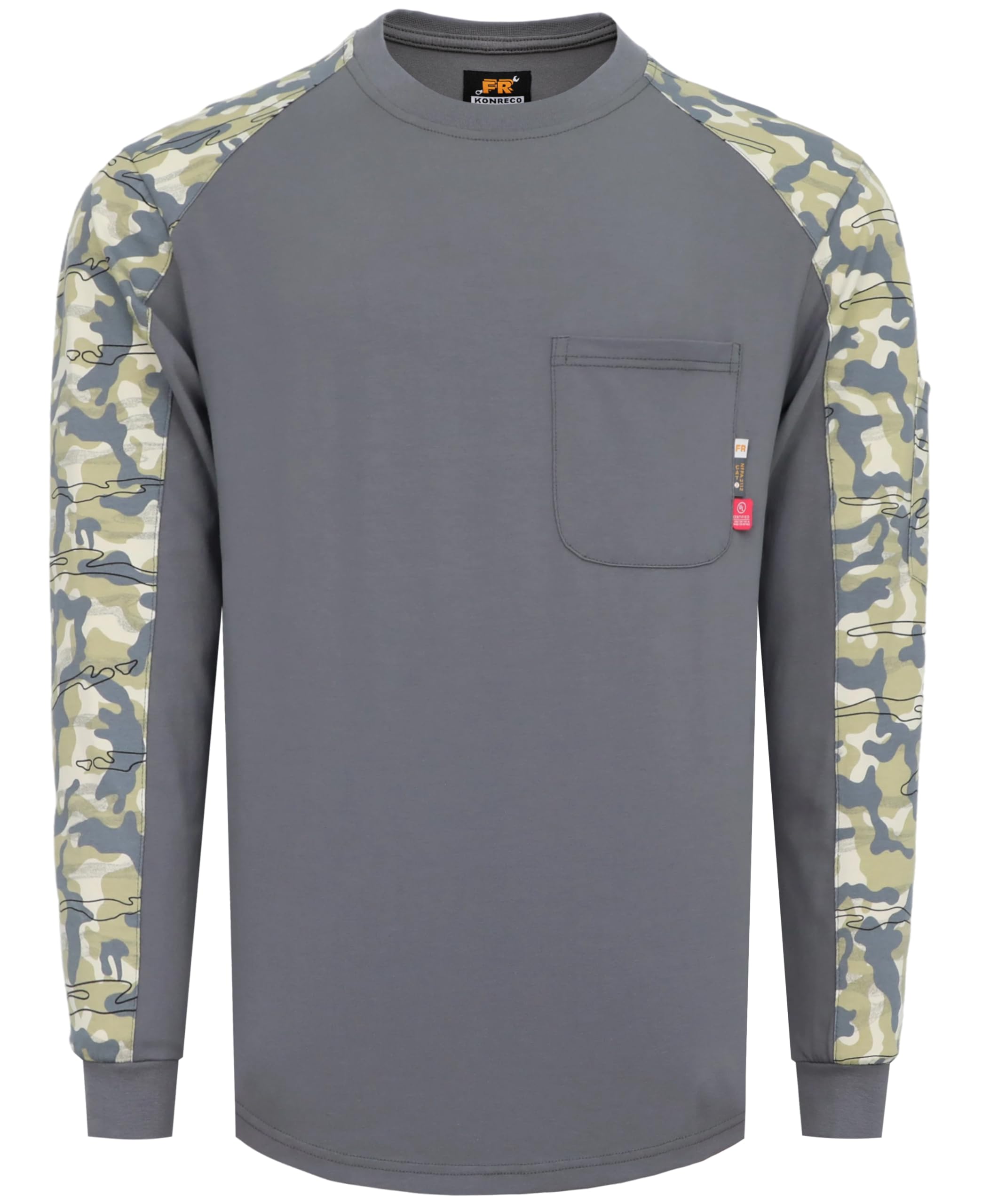[Applied Design]Preshrunk & Pre-washed,Machine Washable.Classic crew neck style with one chest pocket and one sleeve pocket for your convenient storage of small stuffs.Rib-Kint collar and cuffs.Our FR shirt provides you a more comfortable dressing experience.