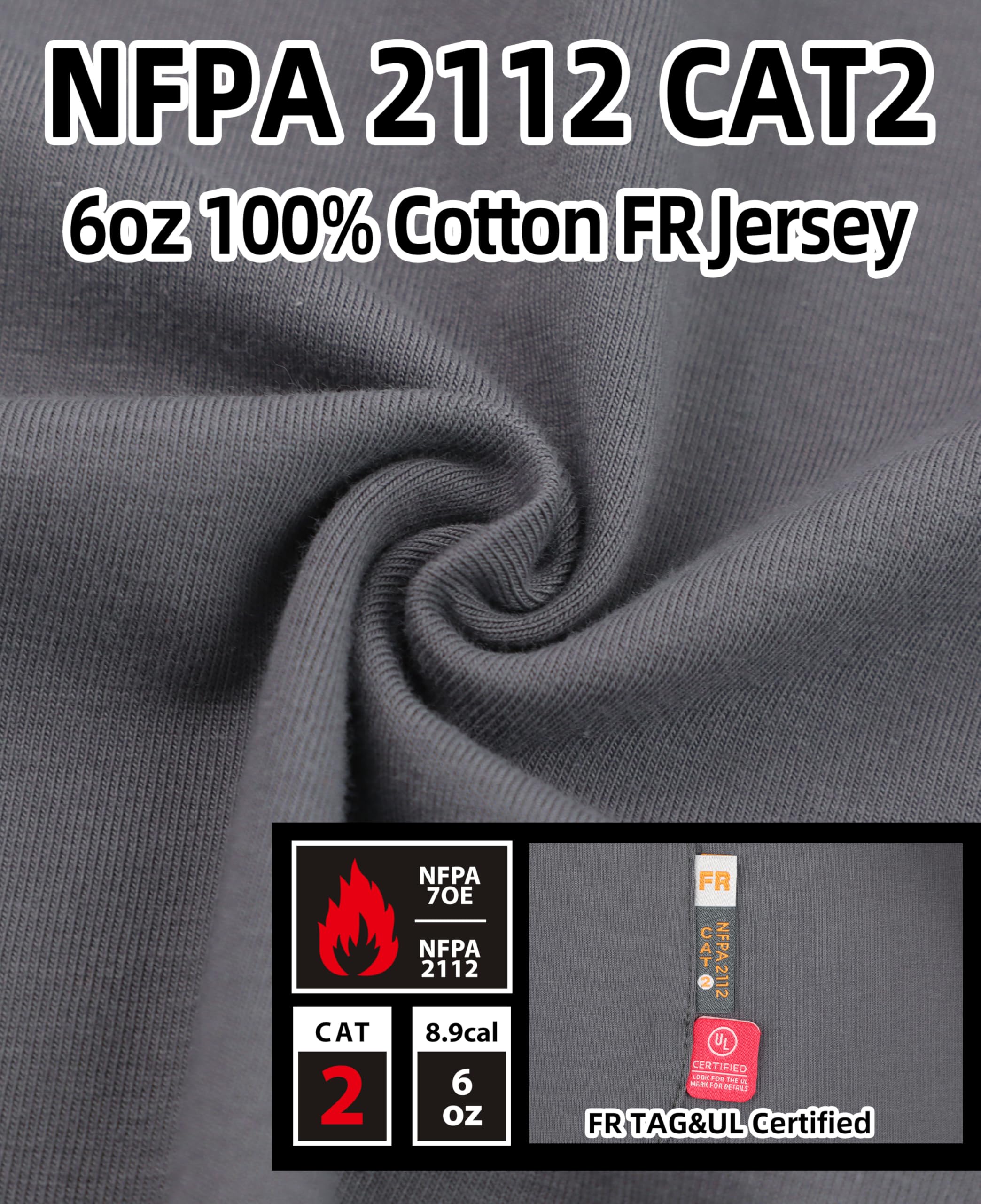 [Detailed Information]Fire resistant 6oz 100% cotton Jersey-smooth fit.One chest pocket and a clearly FR tag.Our FRC CAT2 work shirt provides an Arc Rating of ATPV 8.9 calories/cm²and meets the standards for CAT2/HRC2.It also meets the requirements of NFPA2112 standards on flame-resistant garments for the protection of industrial personnel against flash fire,2018 edition.