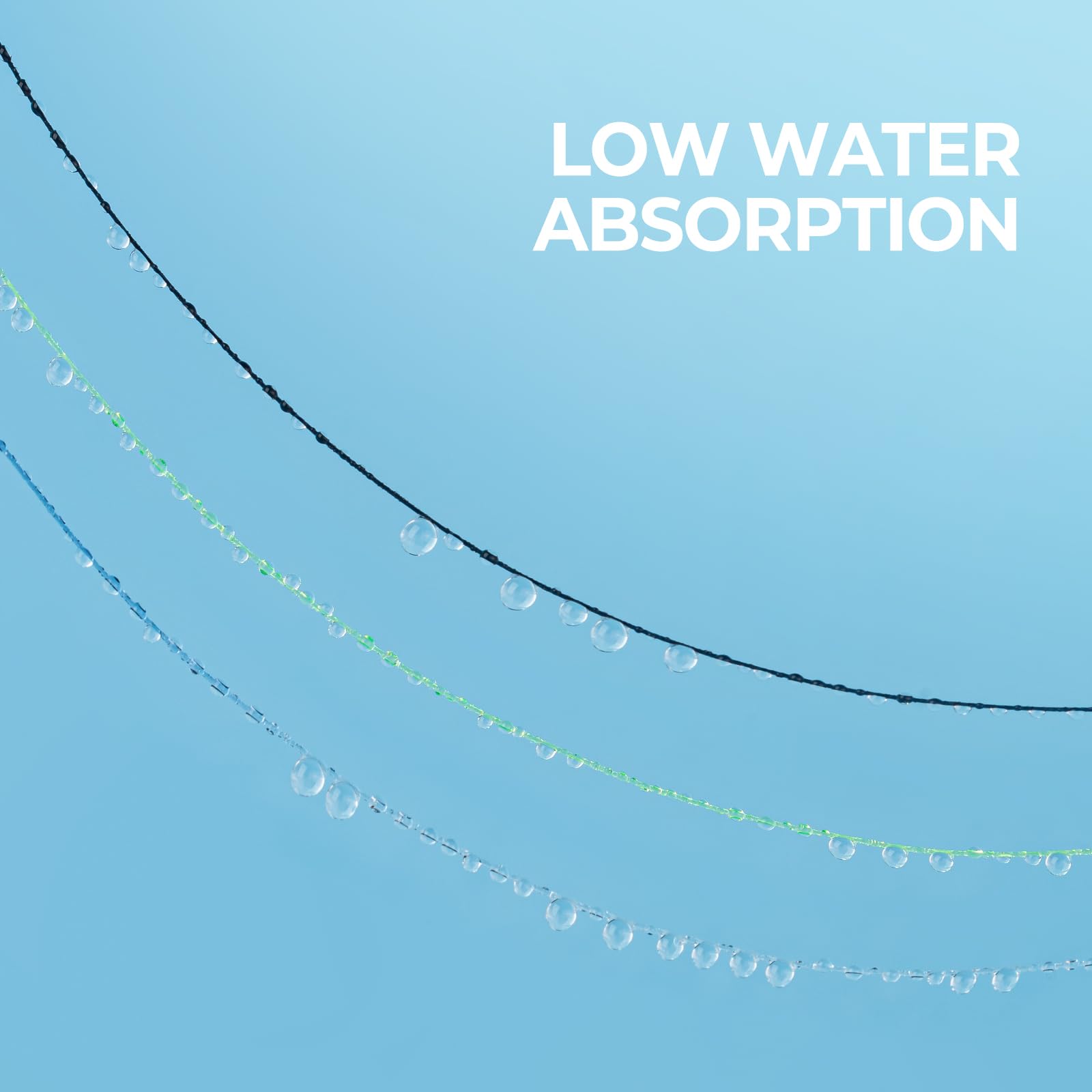 LOW ABSORPTION – Gives the line less limpness and quicker retrieval, allowing any angler to have peace of mind to fish almost any condition and techniques with confidence.