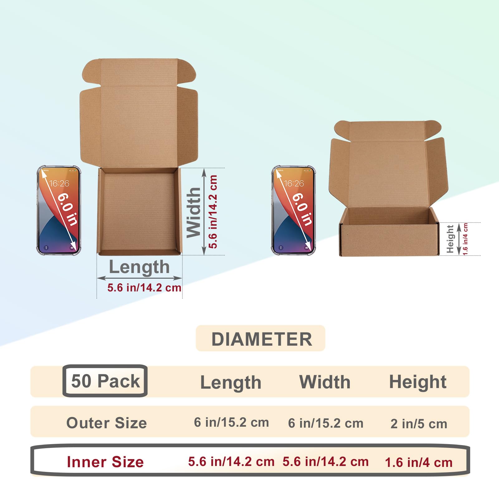 Pack of 50: The size of brown cardboard boxes is 6 x 6 x 2 boxes, and 50 mailer boxes are packaged in a carton. flat shipping flat packaging saves space and makes storage more convenient.