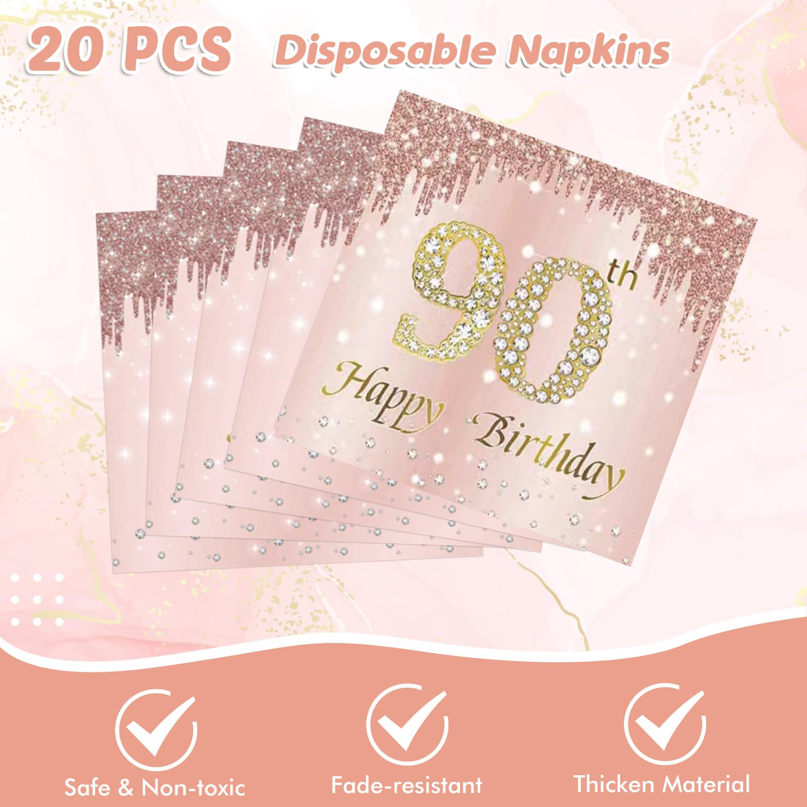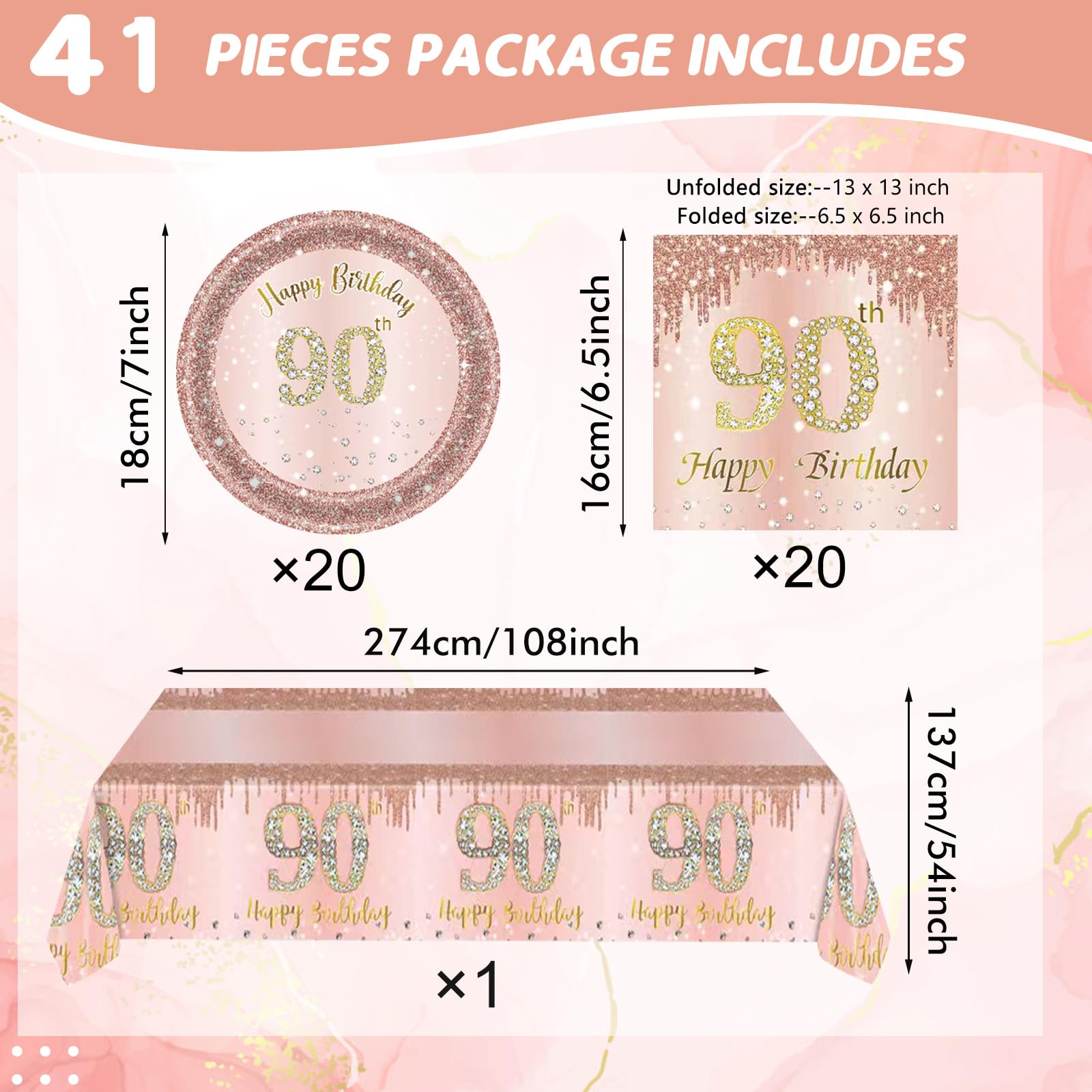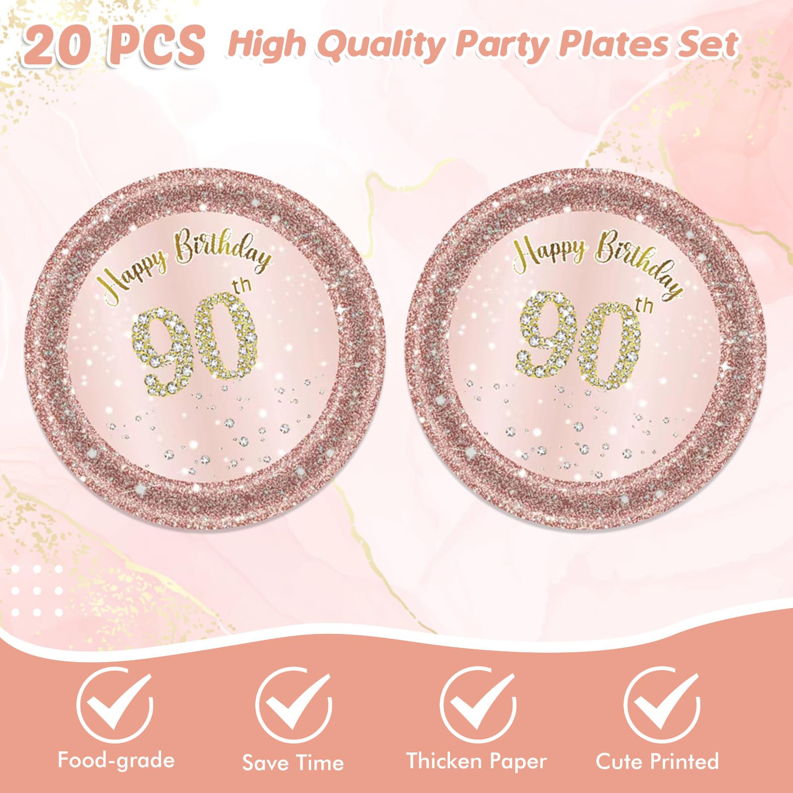 【SWEET 90th BIRTHDAY PLATES FOR WOMEN】The vintage 1935 disposable dinnerware comes with 7" paper dessert plates *20, 6.5" napkins (3 layers) *20 and tablecover *1. The durable dinnerware set allows you to serve 20 guests at one time