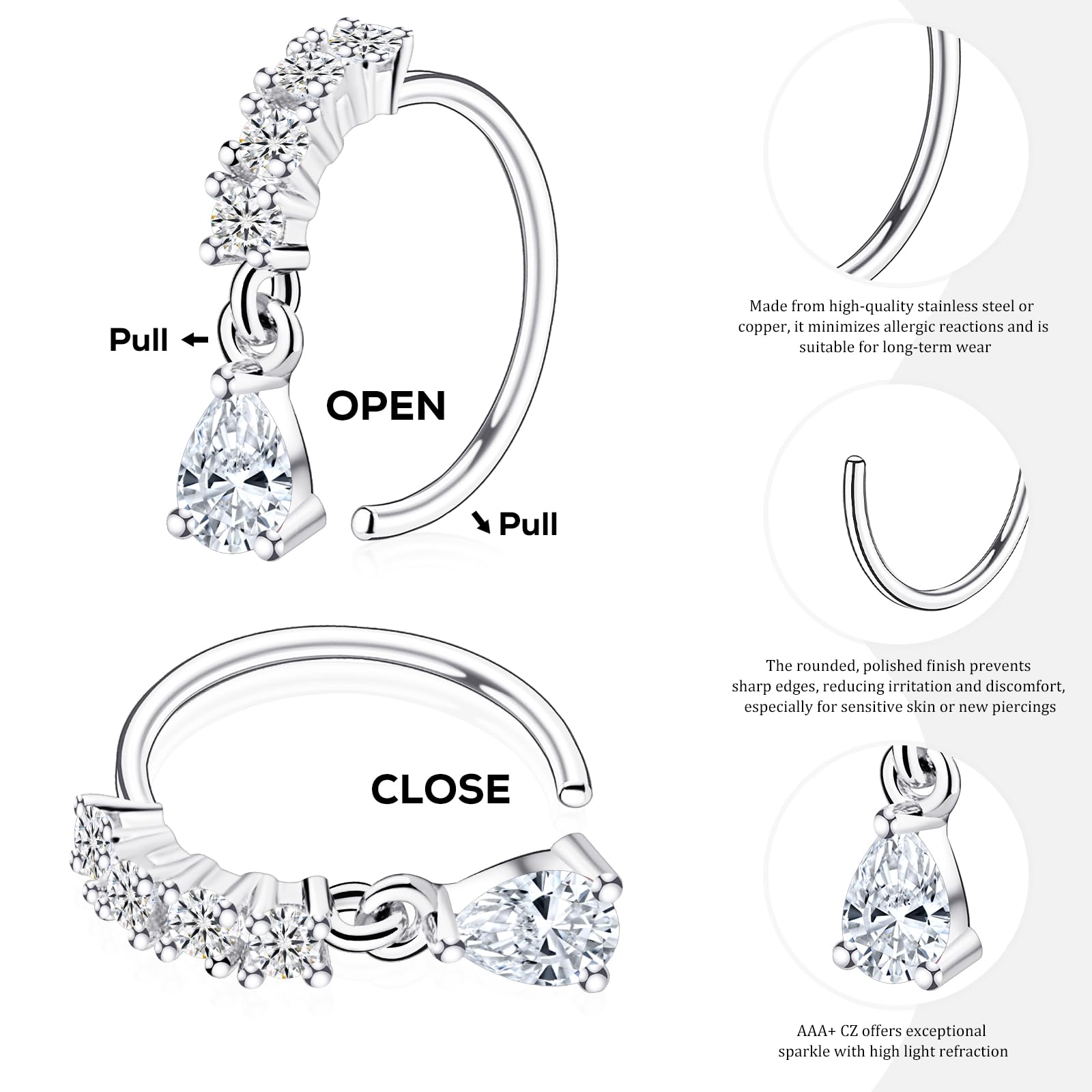 Material: Hoop nose rings are made of stainless steel and copper, highly polished for a tarnish-resistant, skin-friendly finish