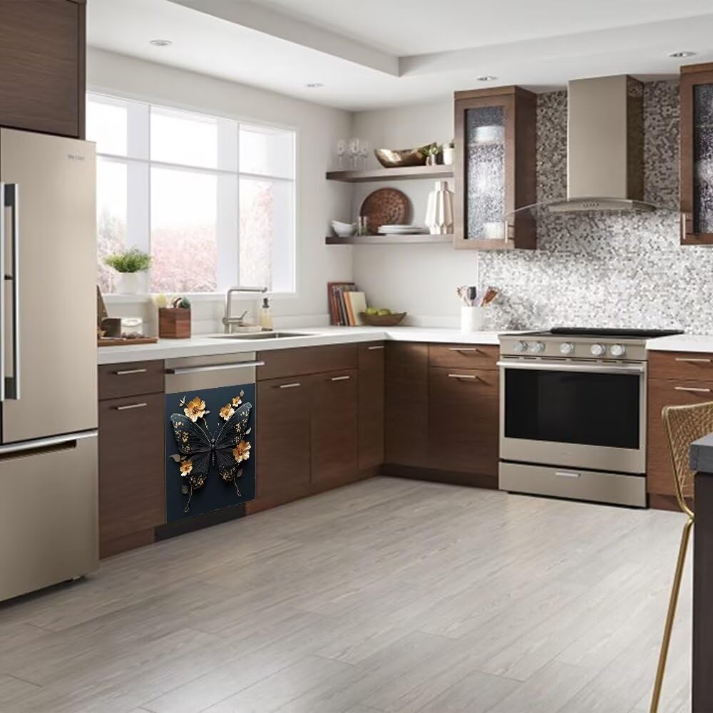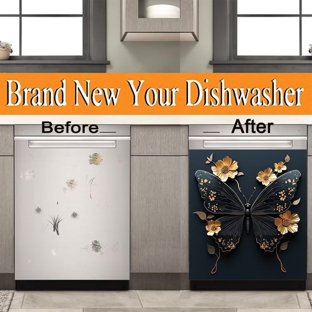 Just a few simple steps to make your kitchen different look. Our Kitchen Dishwasher Stickers allow you to easily transform your kitchen Magnetic Dishwasher Stickers Feature: Smudge, water and heat resistant Easy to clean and maintain Easy to install Renew your kitchen Application: Kitchen dishwashers, kitchen counters, cabinets, drawers, sink cabinets, desktops, walls, washing machines, dryers.Metal surface,plastic surfacetc,glass surface, smooth wooden urface,etc Attention: Before buying, you can measure the size of the dishwasher or washing machine and choose the appropriate size. Sticker is easy to modify, and you can also cut it after receiving the goods. Just ensure that your dishwasher is magnetic before ordering the dishwasher cover magnet