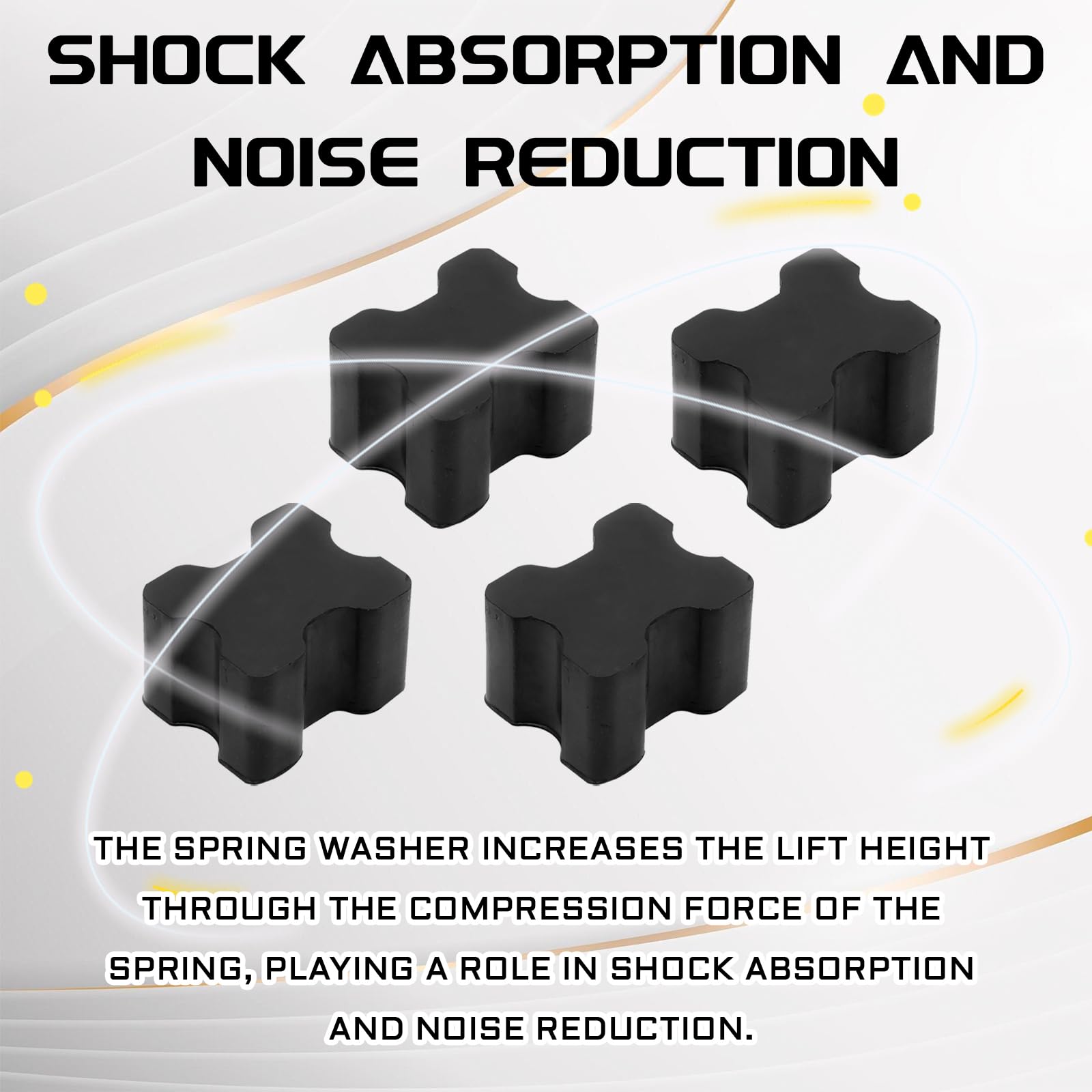 【Performance Enhancement】The effective cooperation of the car coil spring lifter and the spring rubber gasket can solve the problem of weak springs under heavy loads. It can evenly disperse the force when bearing the pressure and impact force of the coil spring, and effectively prevent the spring from being deformed or damaged due to uneven local force